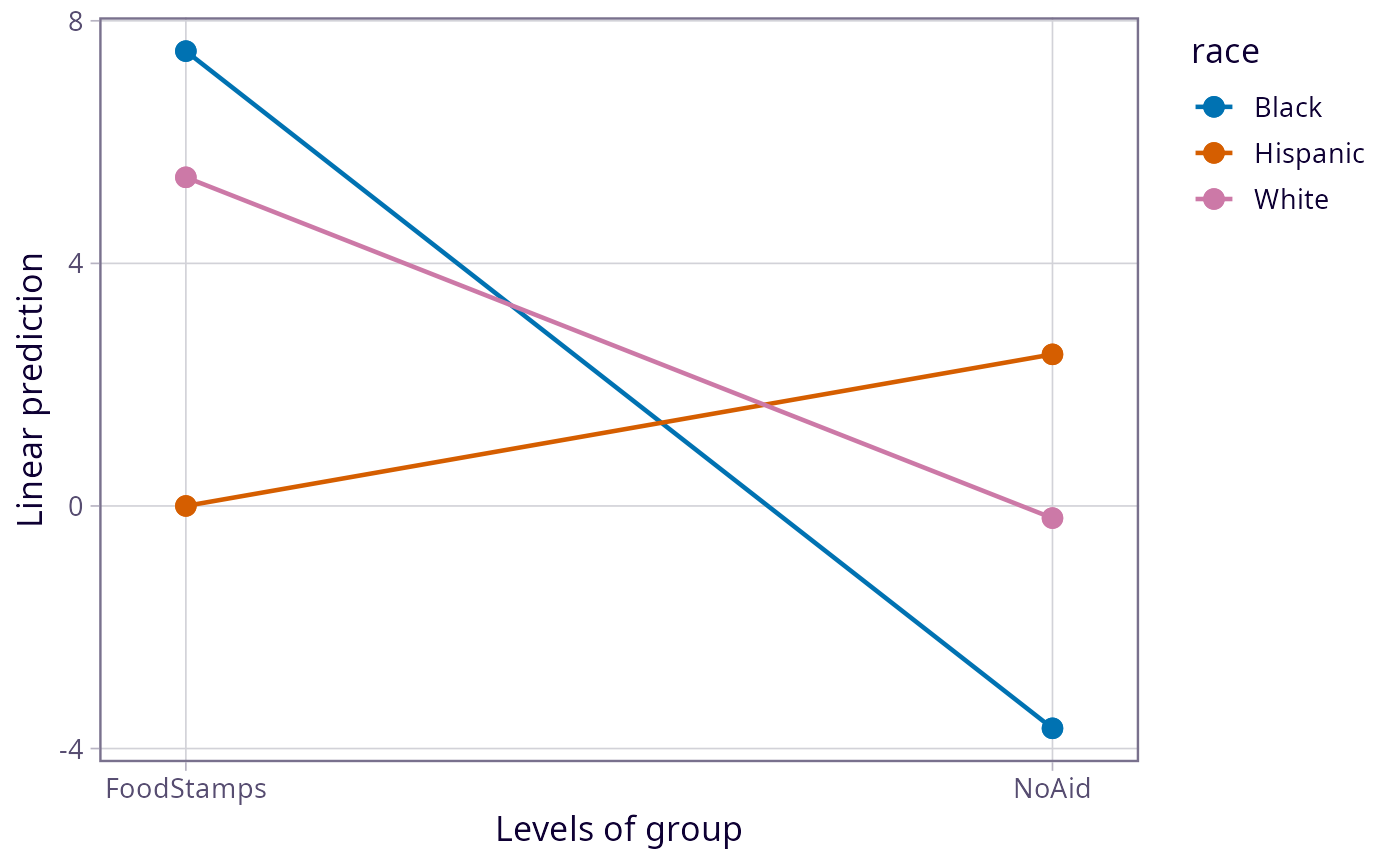 #> Black - White -3.47 2.49 92 -1.394 0.3484