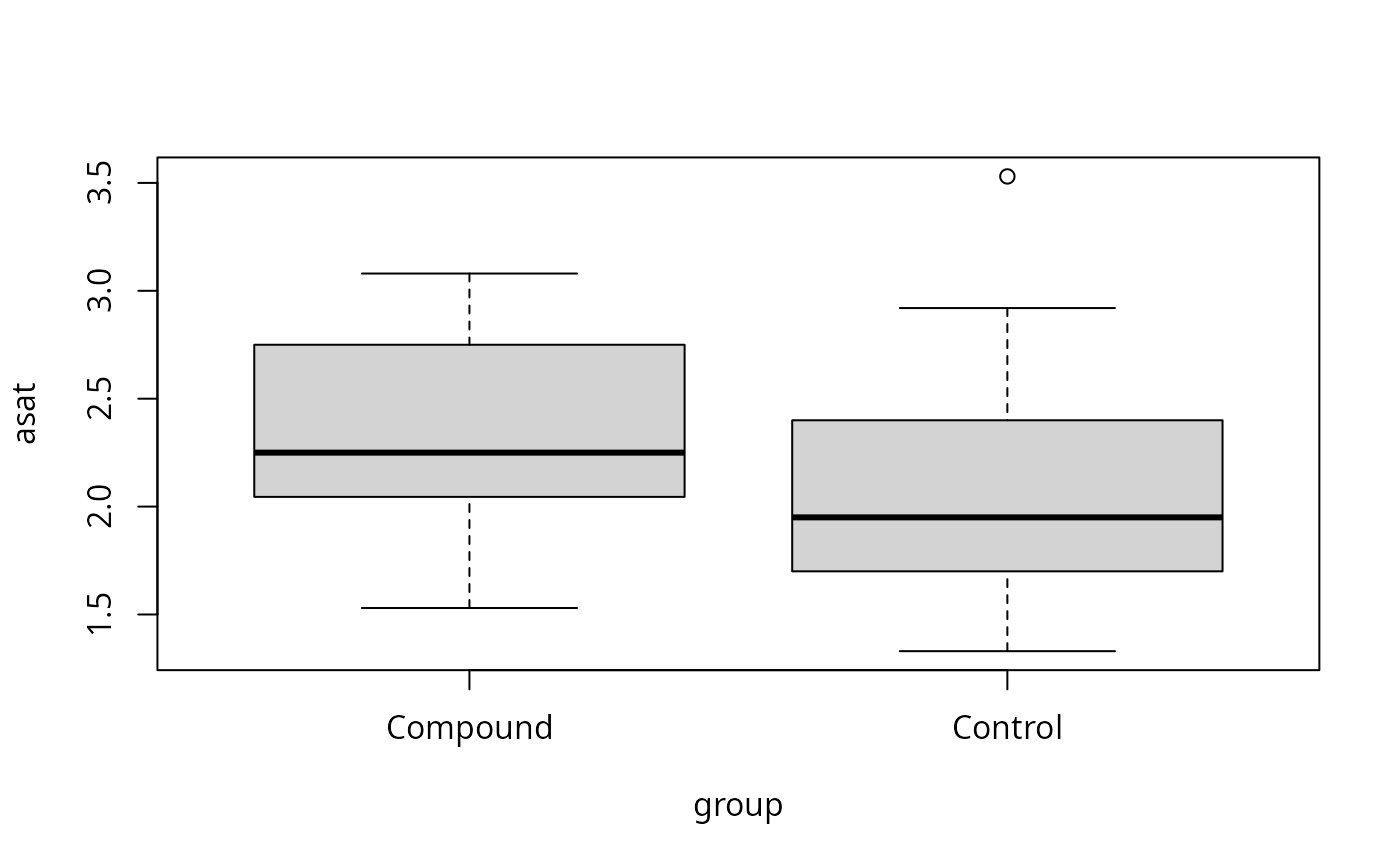 ASAT.RdASAT-Values for a new compound and a control group of 34 female Wistar rats.