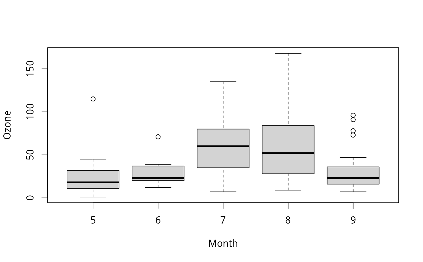 boxplot(Ozone ~ Month, data = airquality)