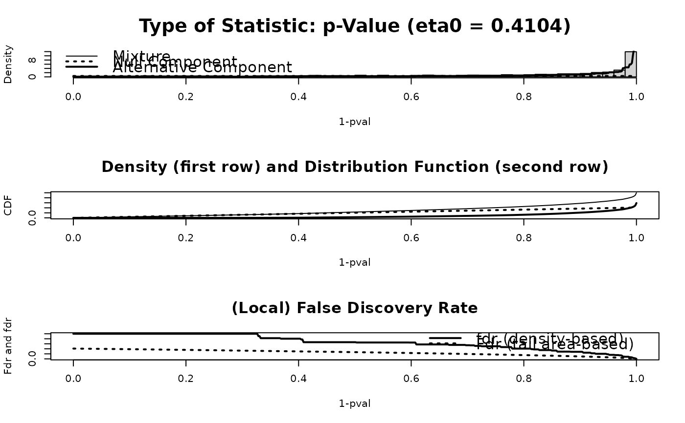 as well as the density-based fdr (=q-value resp. local false discovery rate).