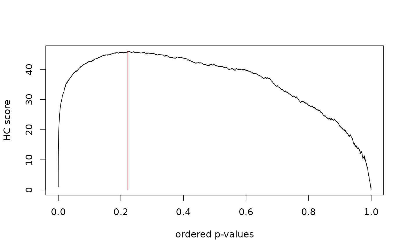 hc.score returns a vector with the HC score corresponding to each p-value.