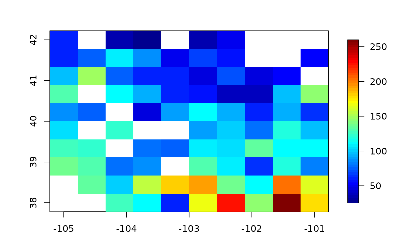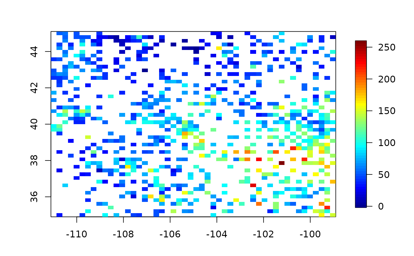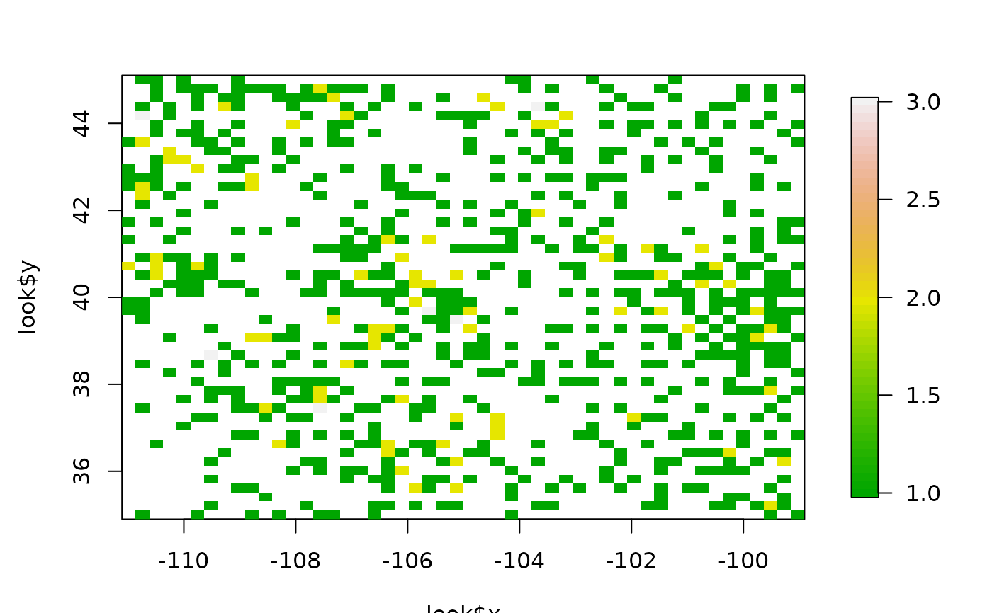 look<- as.image( RMprecip$y, x= RMprecip$x, nx=50, ny=50)
