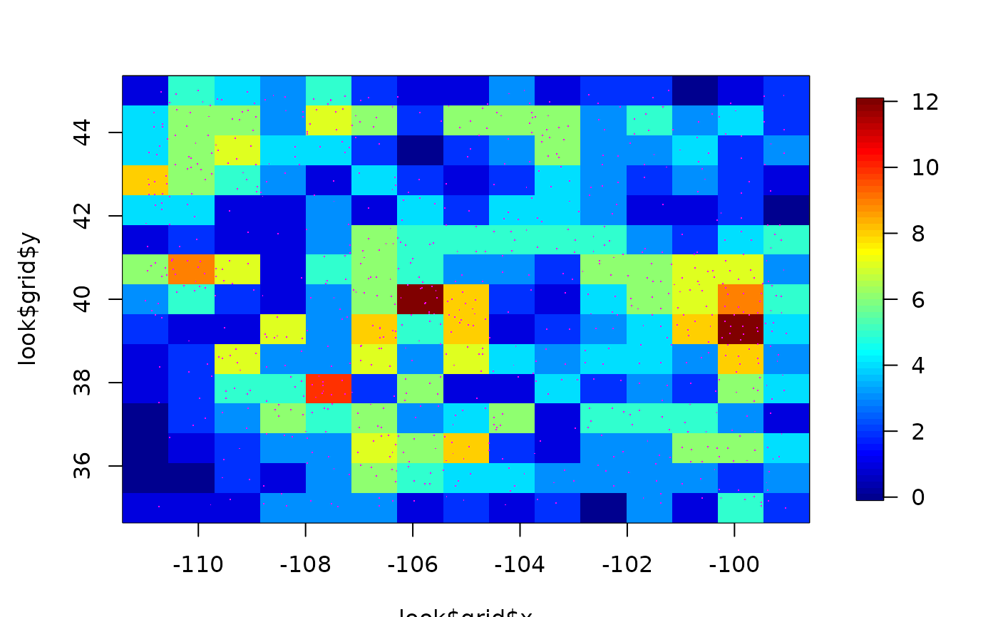 look<- discretize.image( RMprecip$x, m=15, n=15)