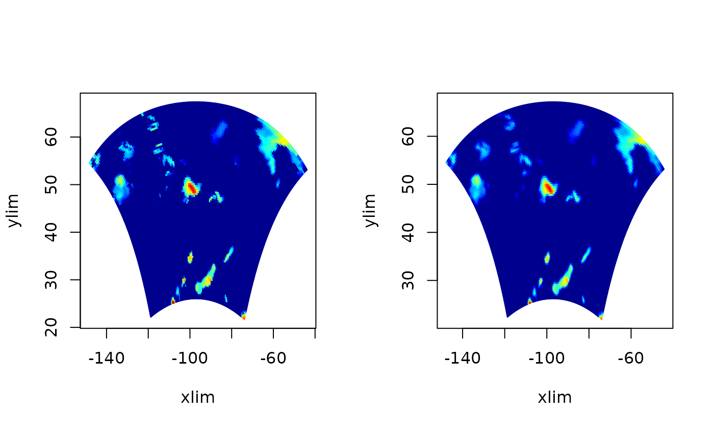 poly.image( RCMexample$x, RCMexample$y, RCMexample$z[,,1],midpoint=TRUE)