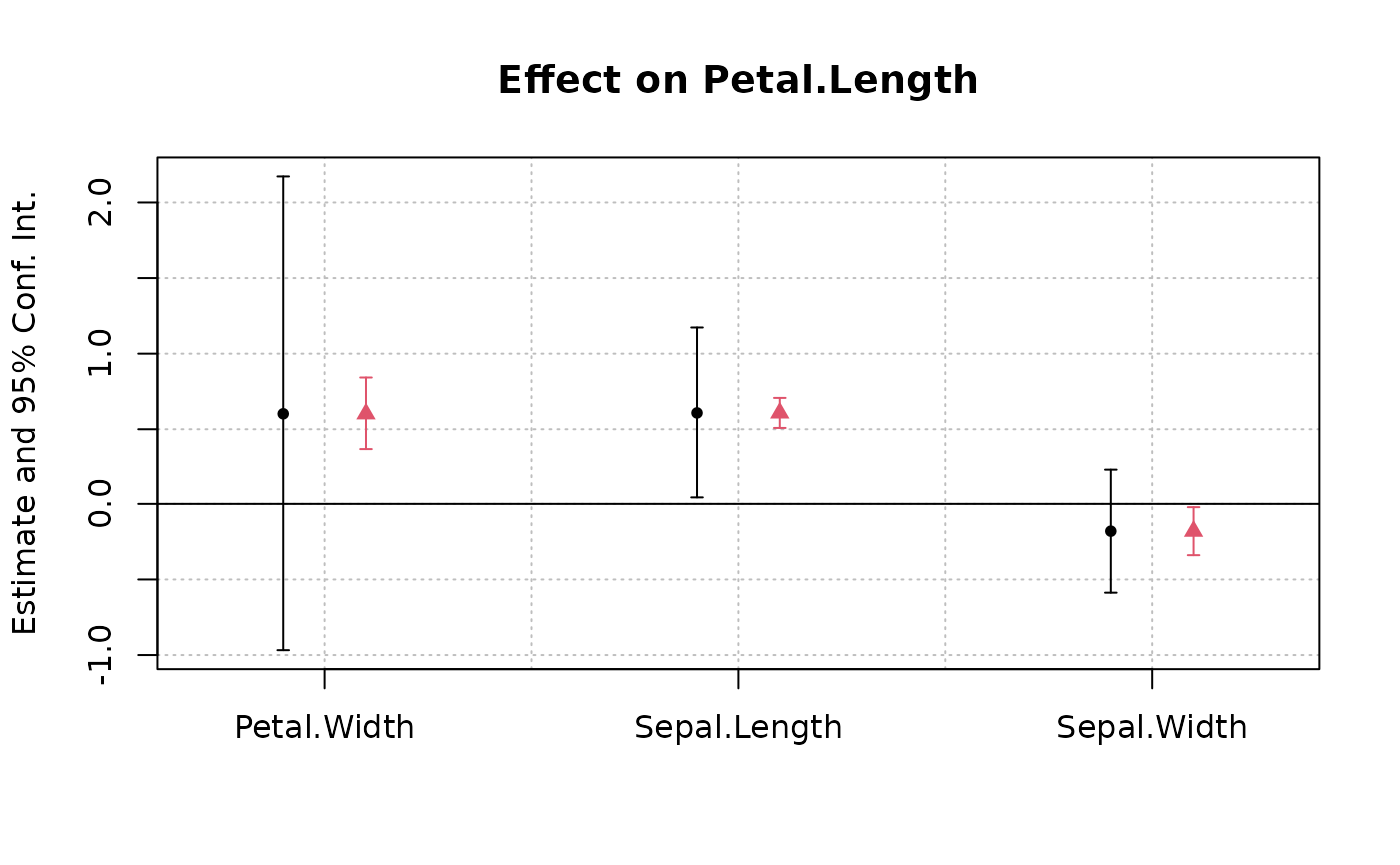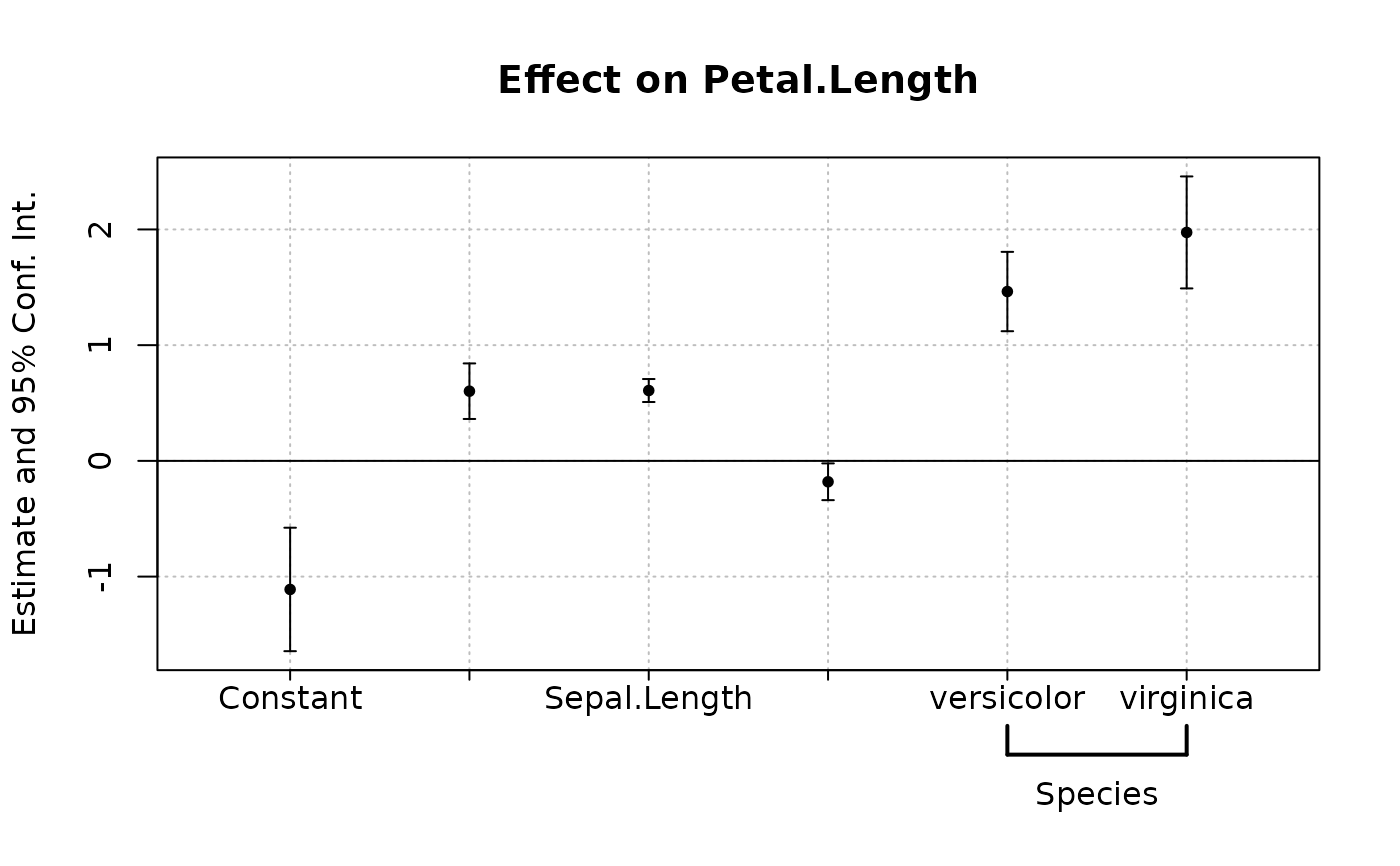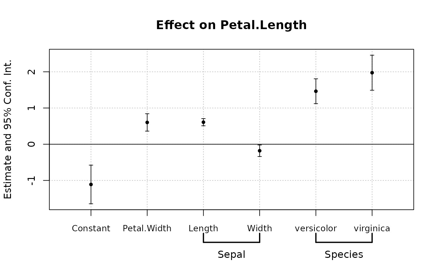 est = feols(Petal.Length ~ Petal.Width + Sepal.Length +