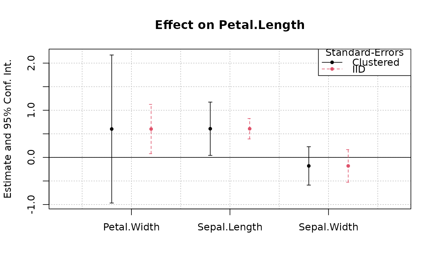 legend = c("Clustered", "IID"), title = "Standard-Errors")