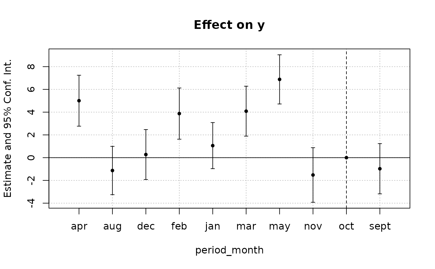 est = feols(y ~ x1 + i(period_month, treat, "oct") | id+period, base_inter)