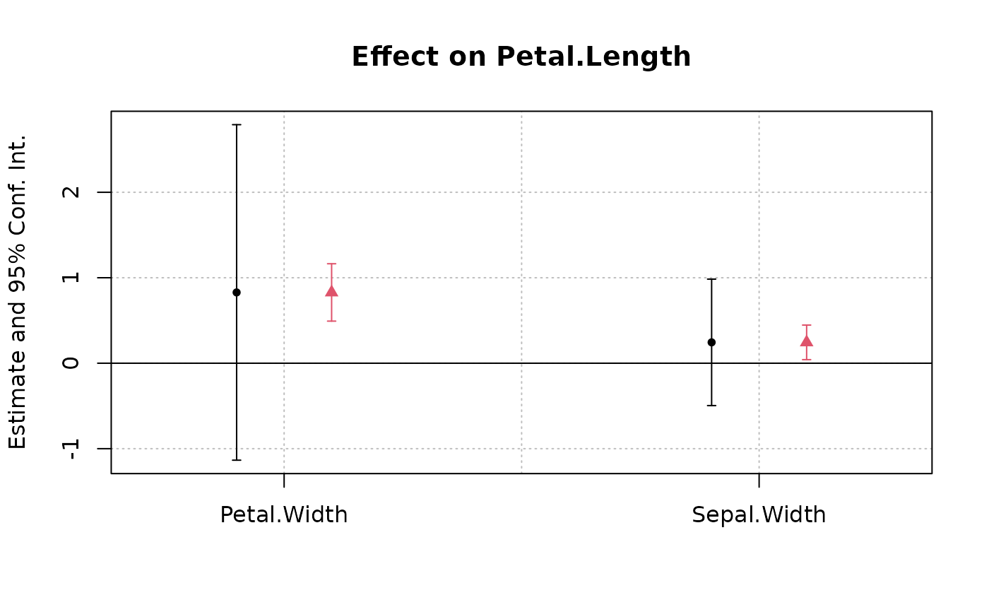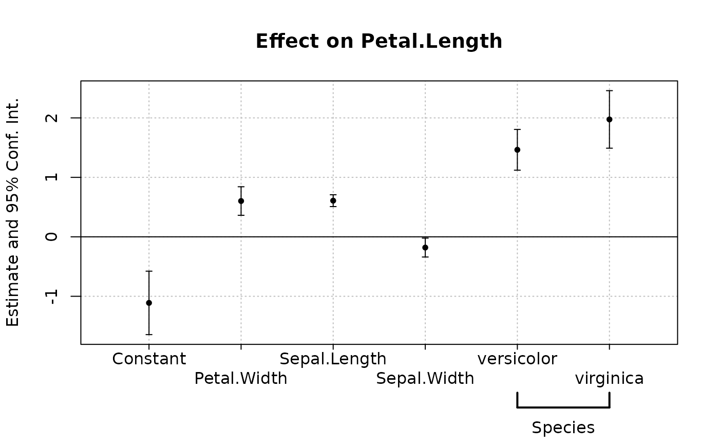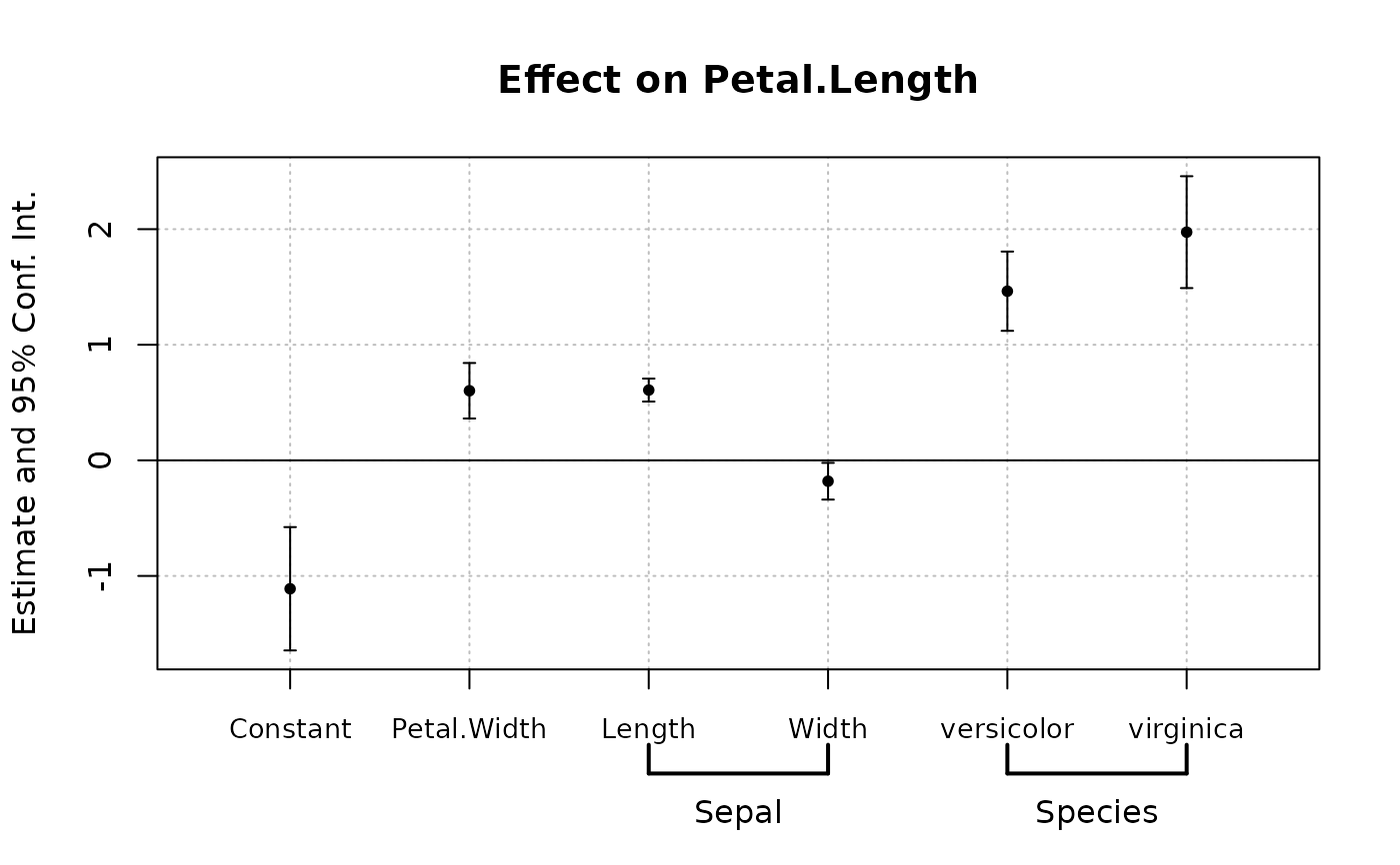 est = feols(Petal.Length ~ Petal.Width + Sepal.Length +