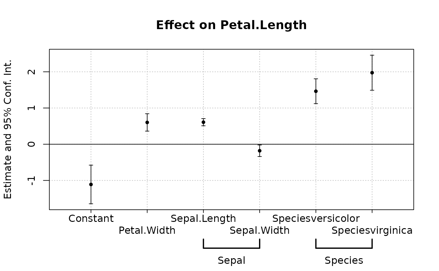 coefplot(est, group = list(Sepal = "Sepal", Species = "Species"))