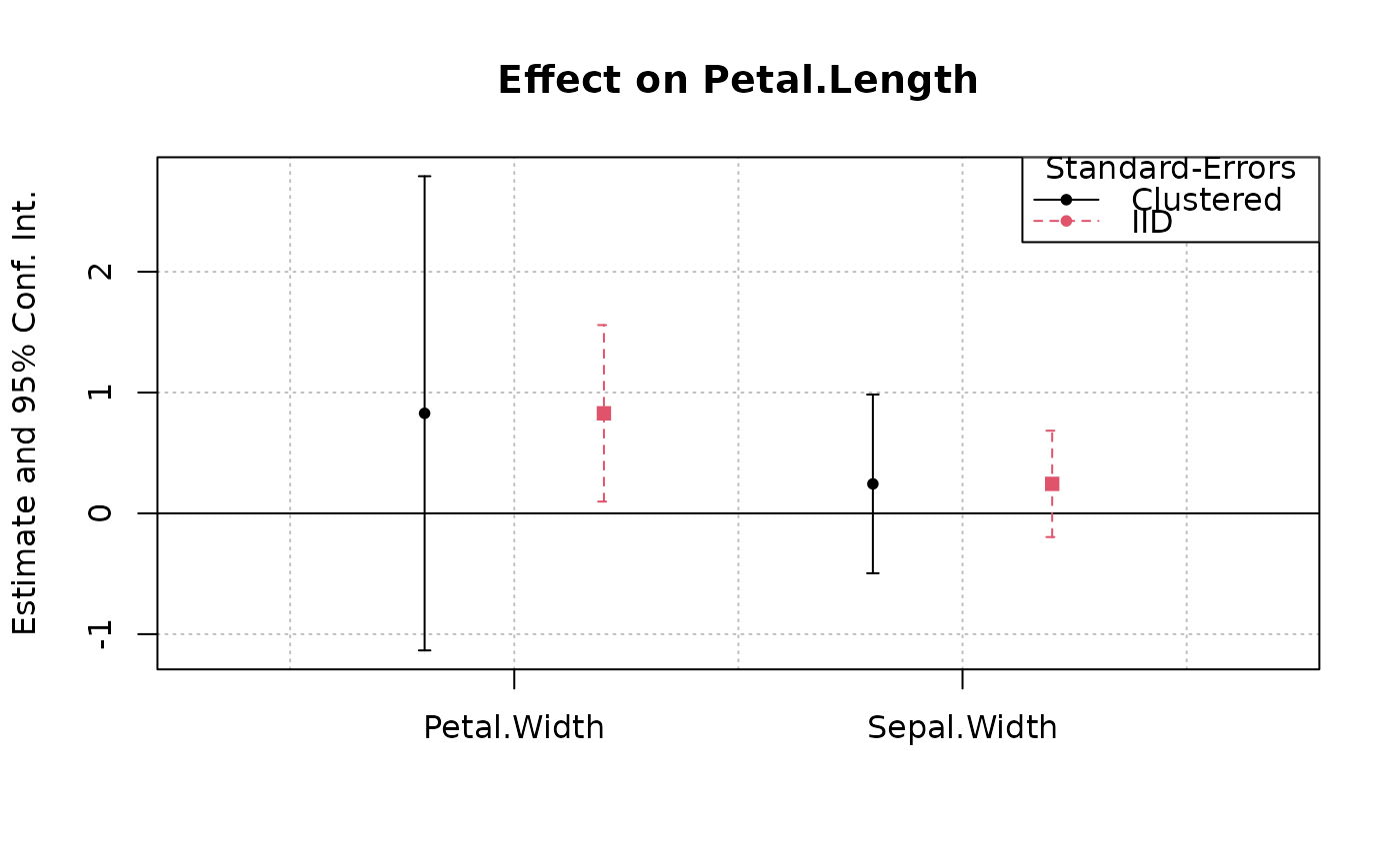 coefplot(est, vcov = list("cluster", "iid"))