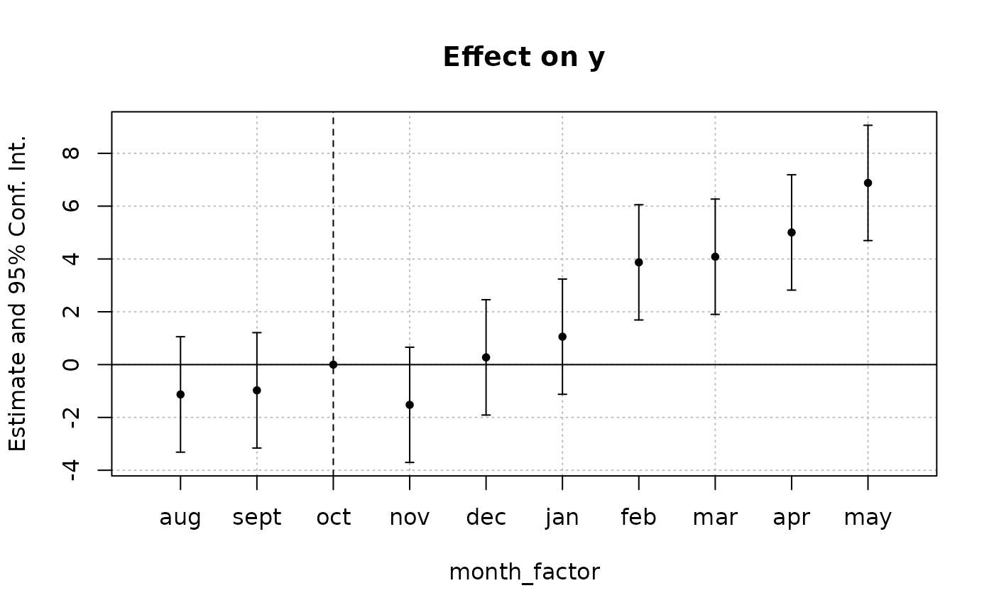 est = feols(y ~ x1 + i(month_factor, treat, "oct") | id + period, base_inter)