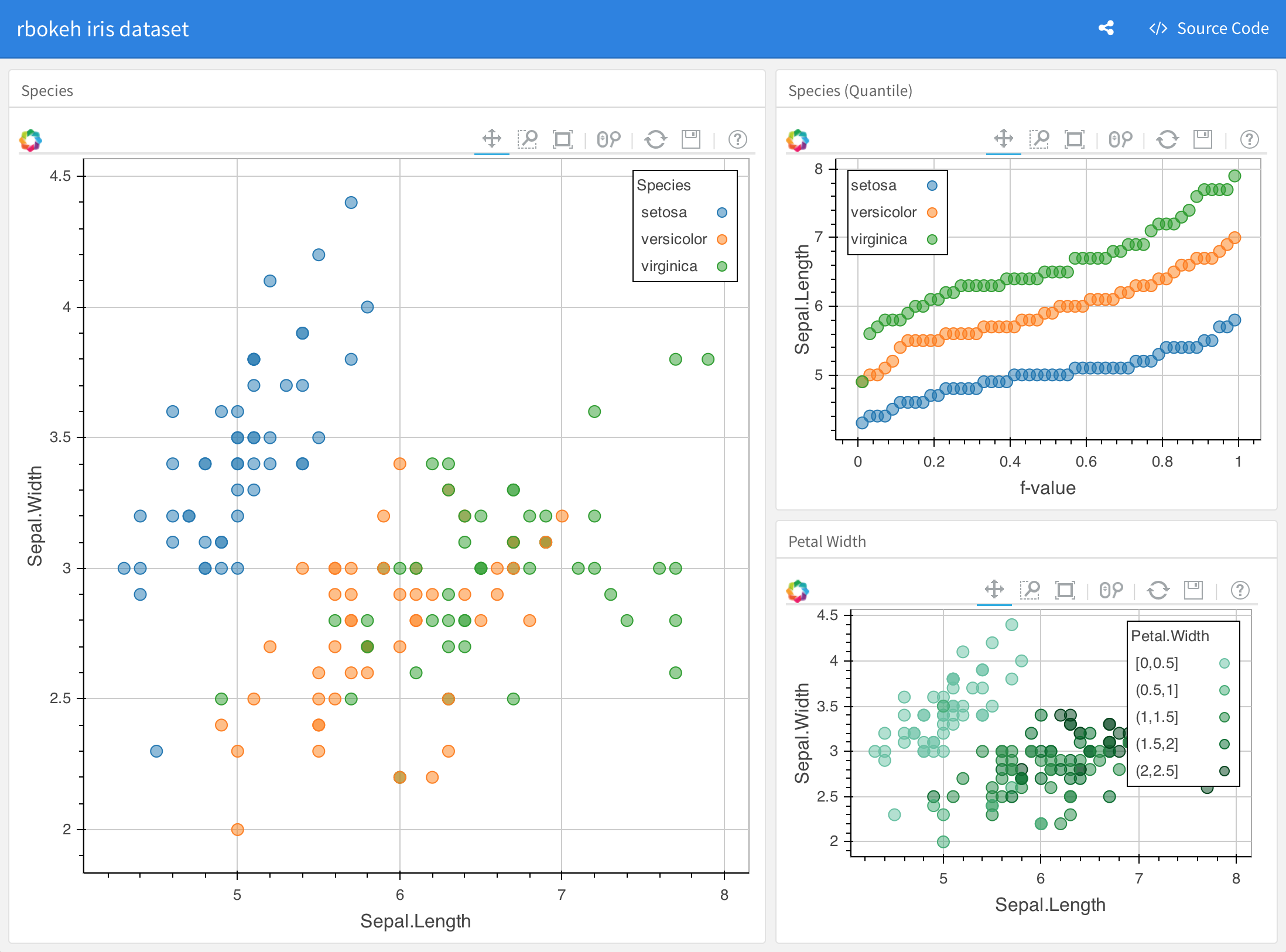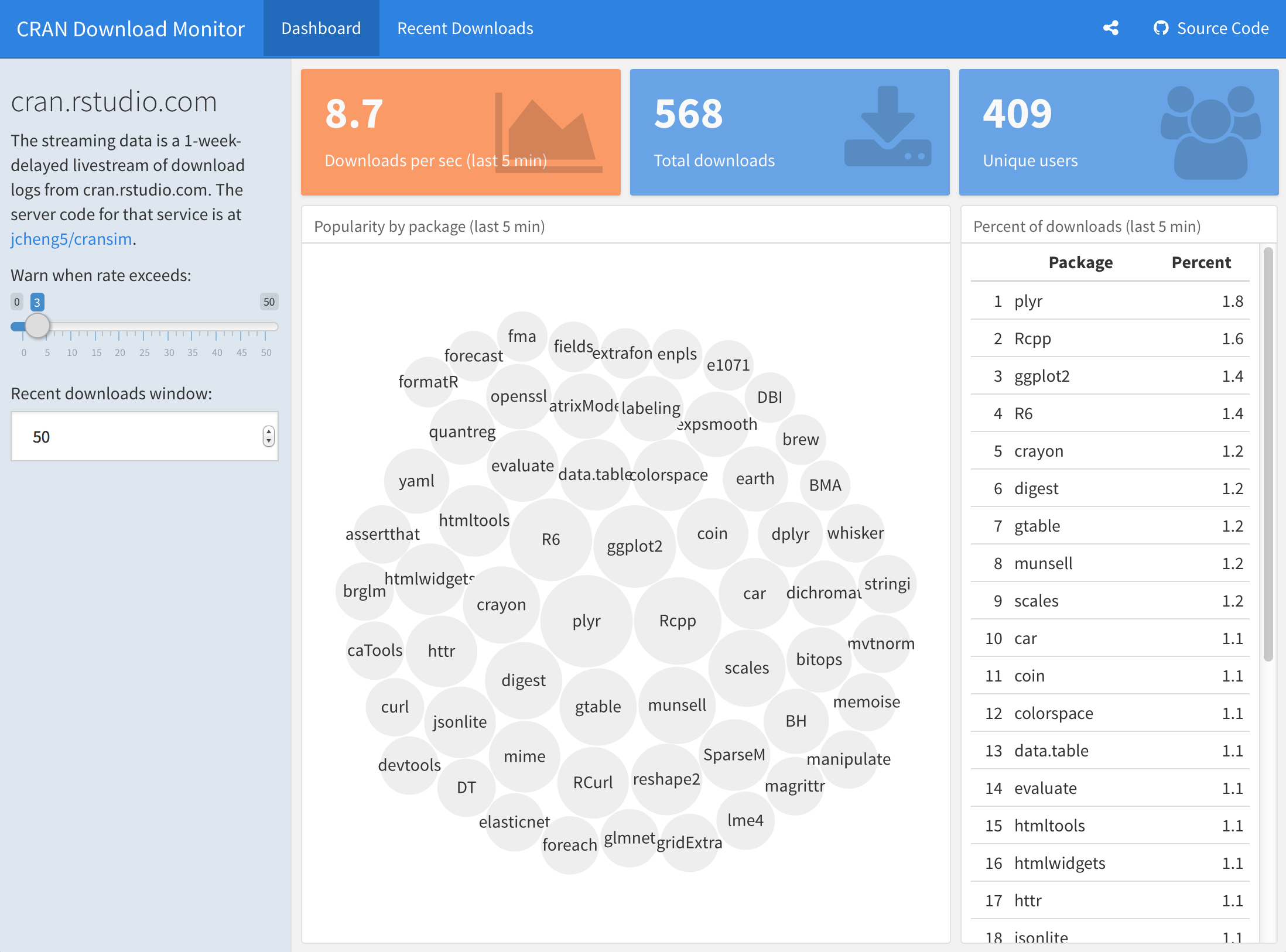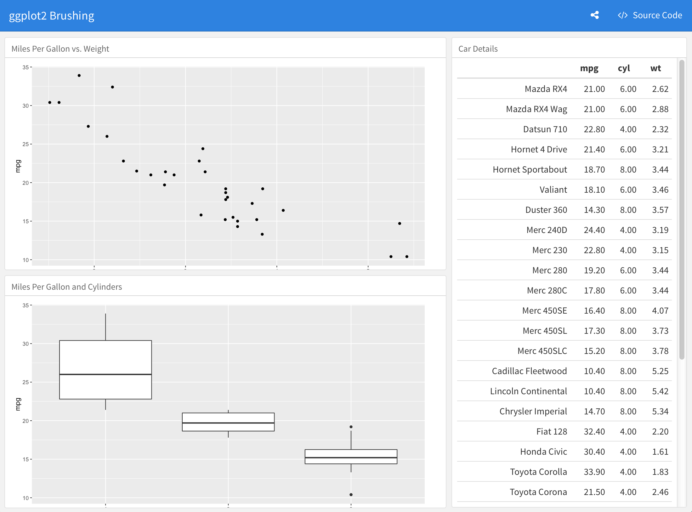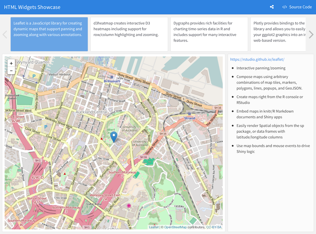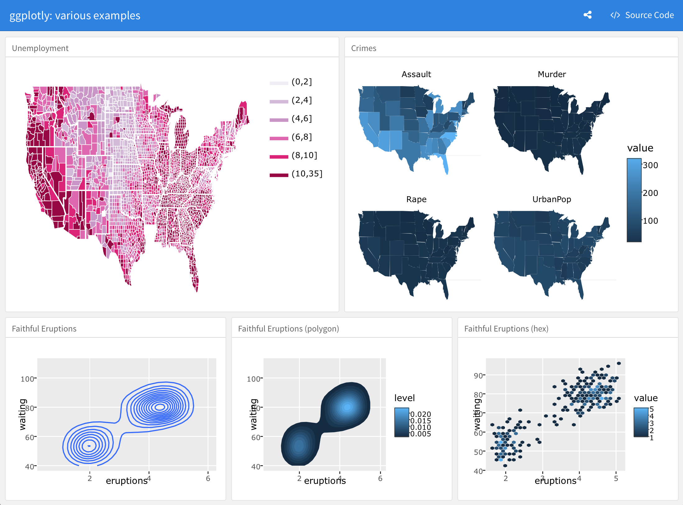 The examples below illustrate the use of flexdashboard with various packages and layouts. If you want to learn more about how the dashboards were created each example includes a link to its source code.