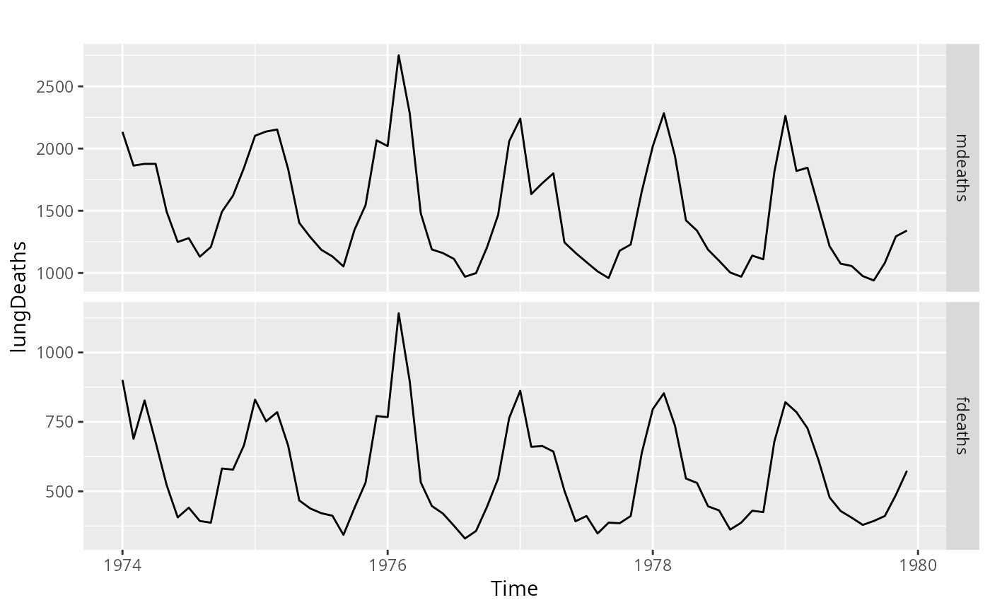 TRUE, multiple time series will be faceted (and unless specified, colour is set toFALSE). IfFALSE, each series will be assigned a colour.- model