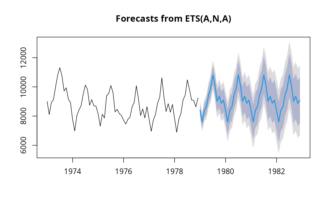 results, while the functions plot and autoplot produce plots of the forecasts and