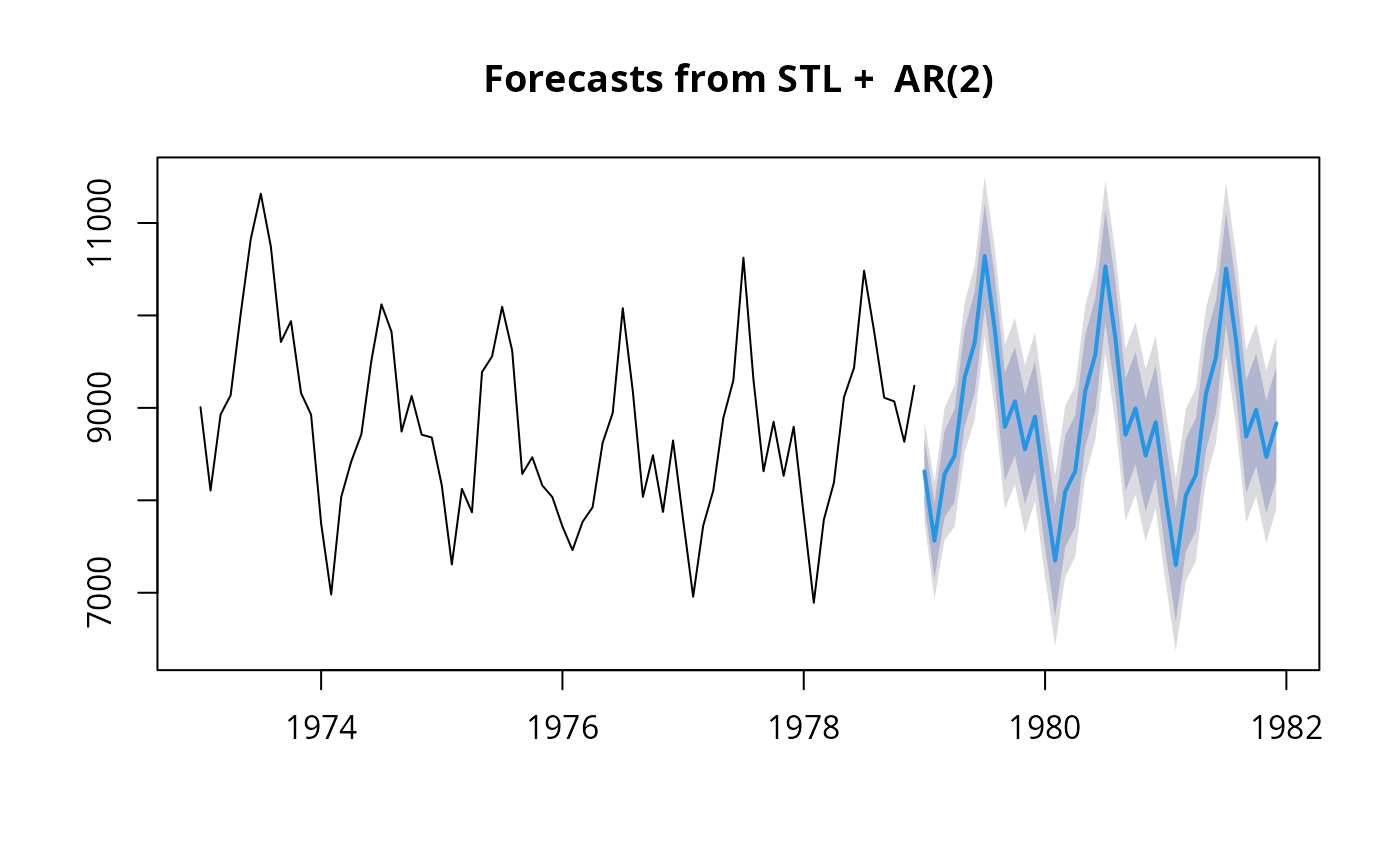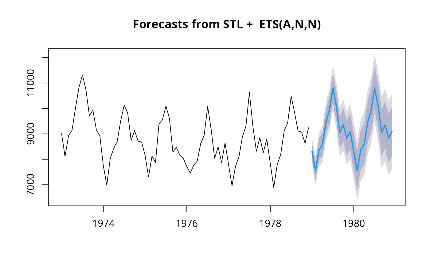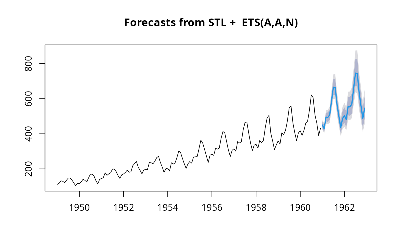 ts argument, applies an STL decomposition, models the seasonally
