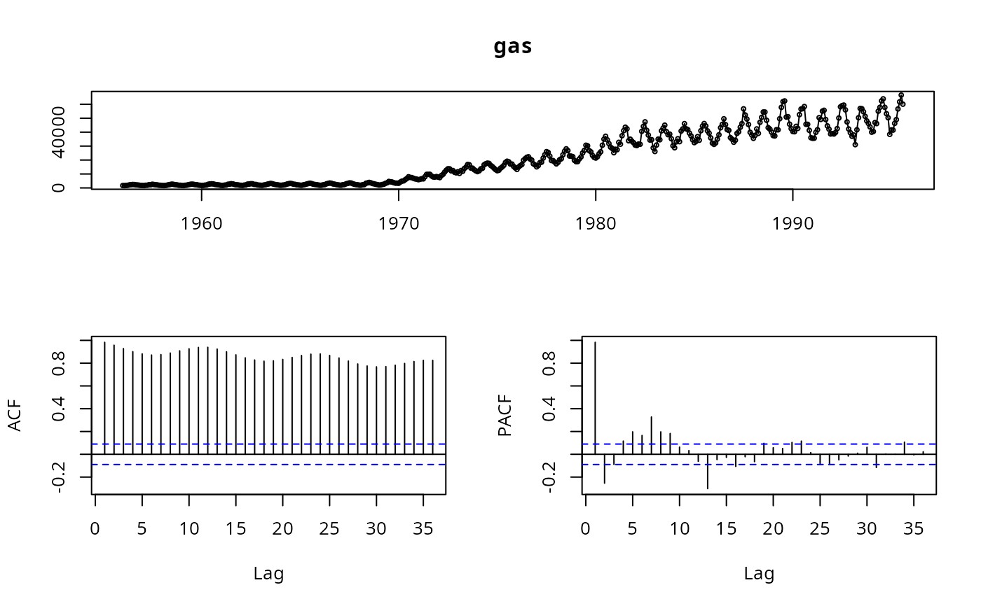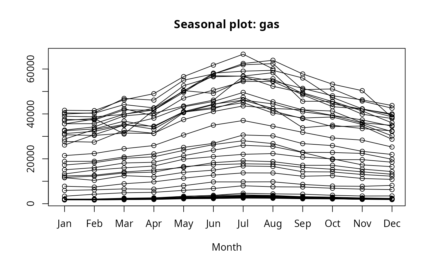 plot(gas) seasonplot(gas) tsdisplay(gas)