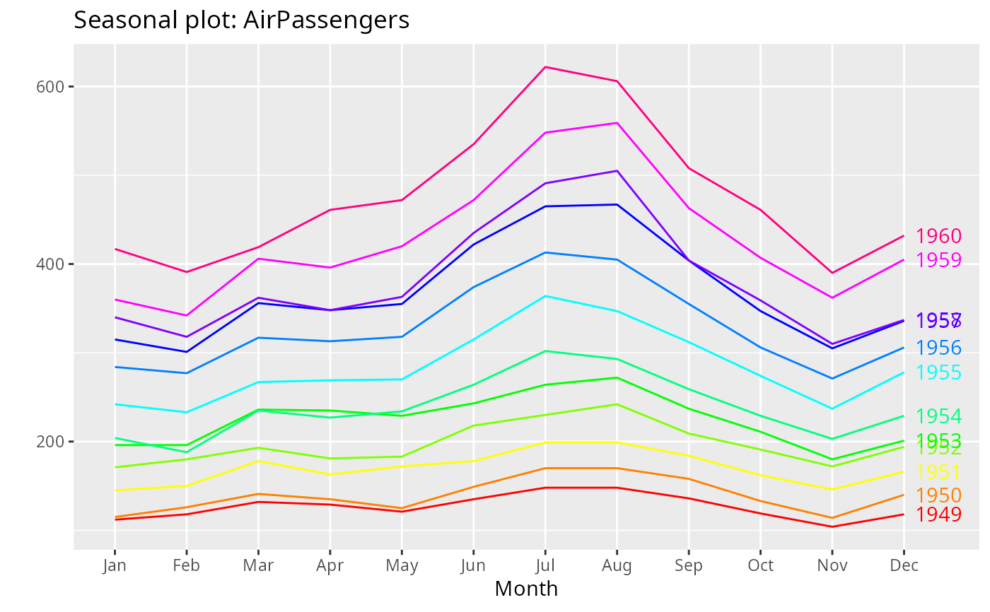 graphics::plot()). Not yet supported for ggseasonplot.- col