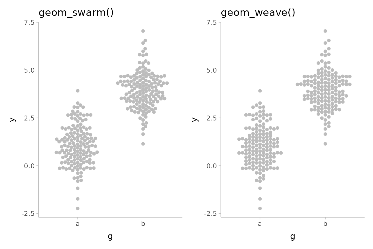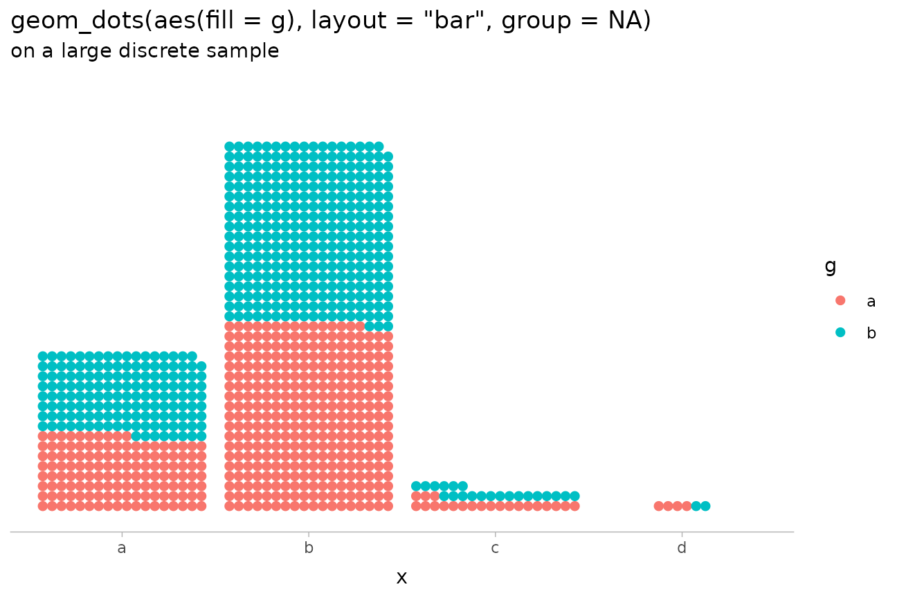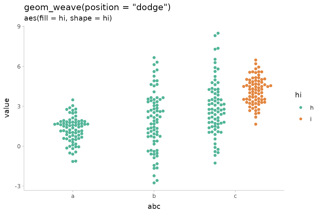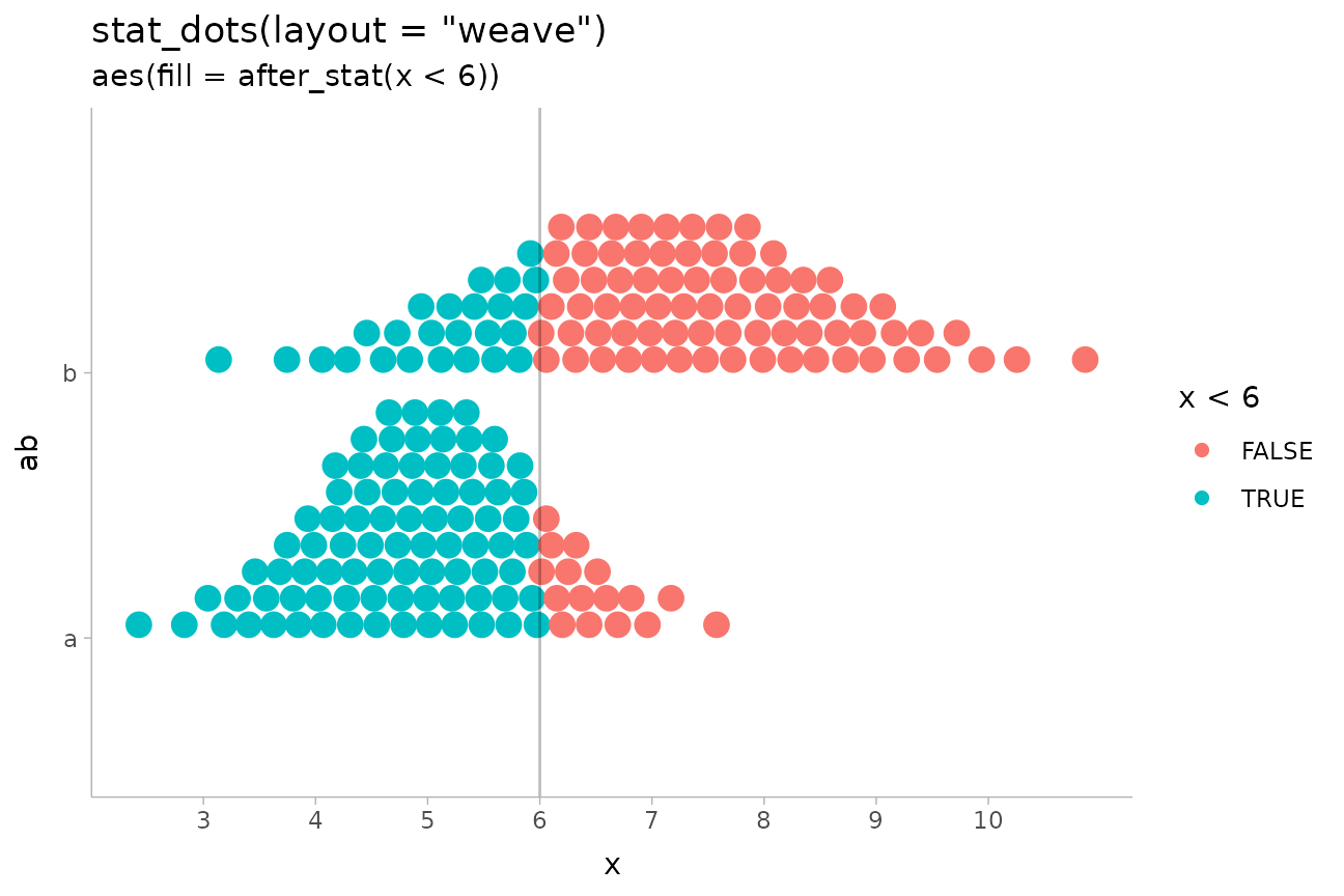 stat_dots(position = "dodge", color = NA, layout = "weave") +