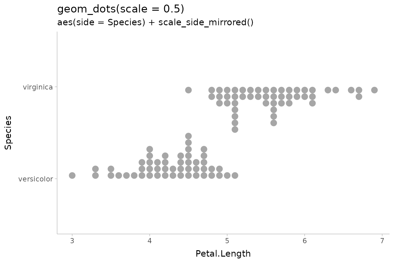 subtitle = 'aes(side = Species) + scale_side_mirrored()',