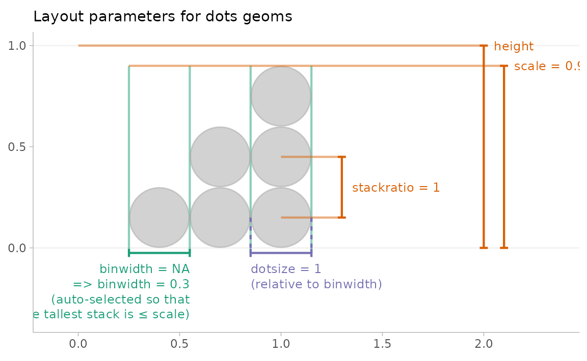 keeps the tallest stack of dots shorter than scale.dotsize: The size of the dots as a percentage of