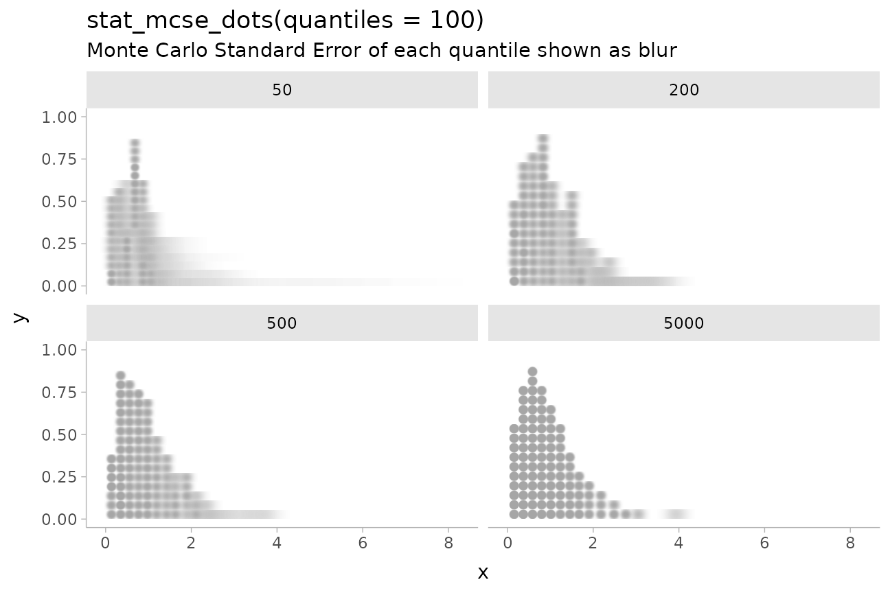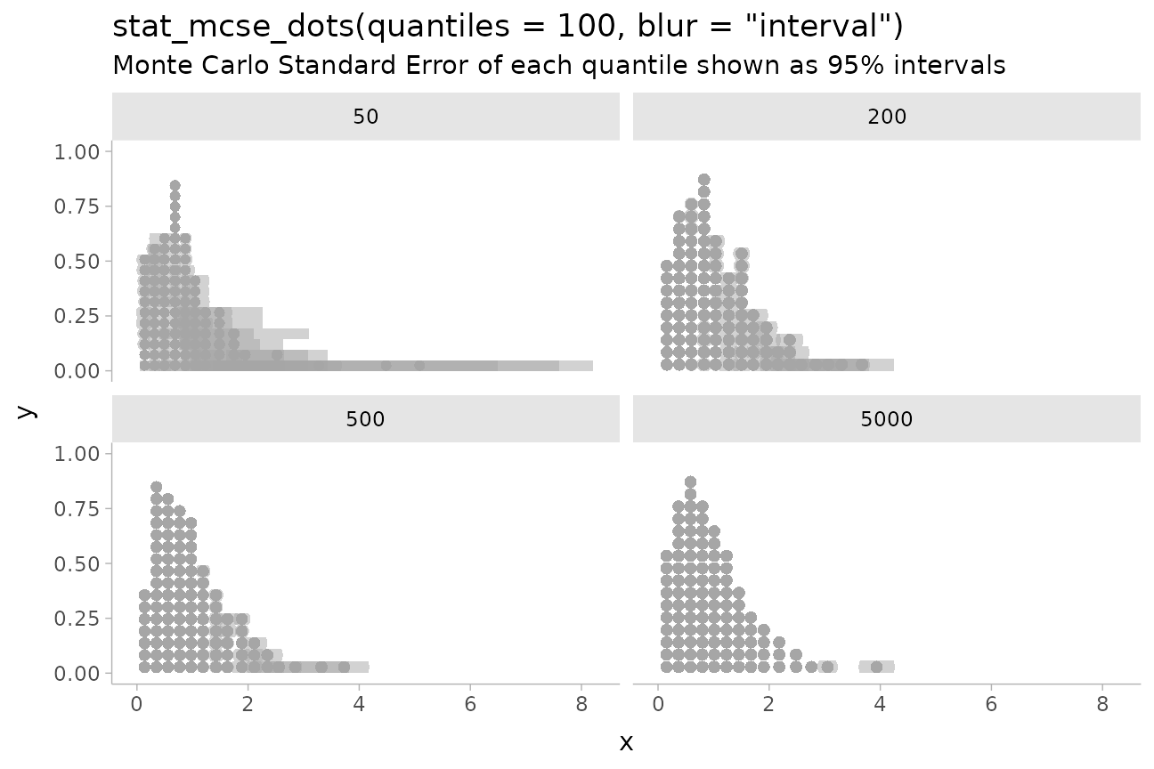 stat_mcse_dots(quantiles = 100, blur = "interval") +
