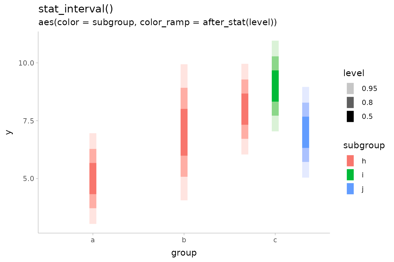 Some have geom counterparts (e.g. stat_interval()