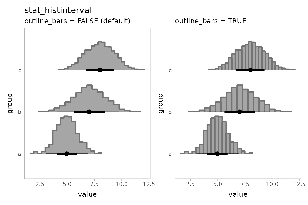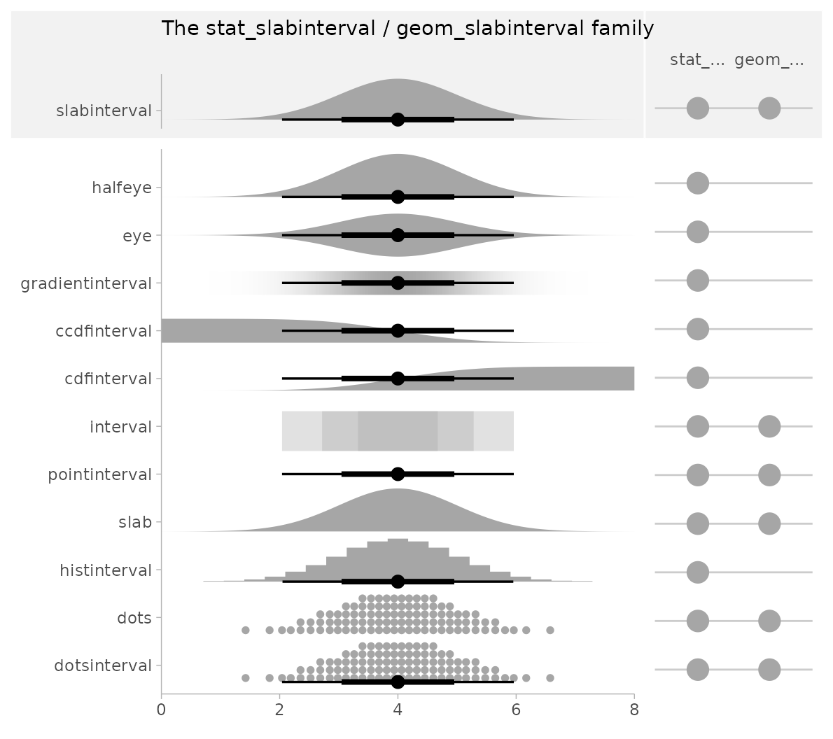 geoms in the geom_slabinterval() family, allowing (for