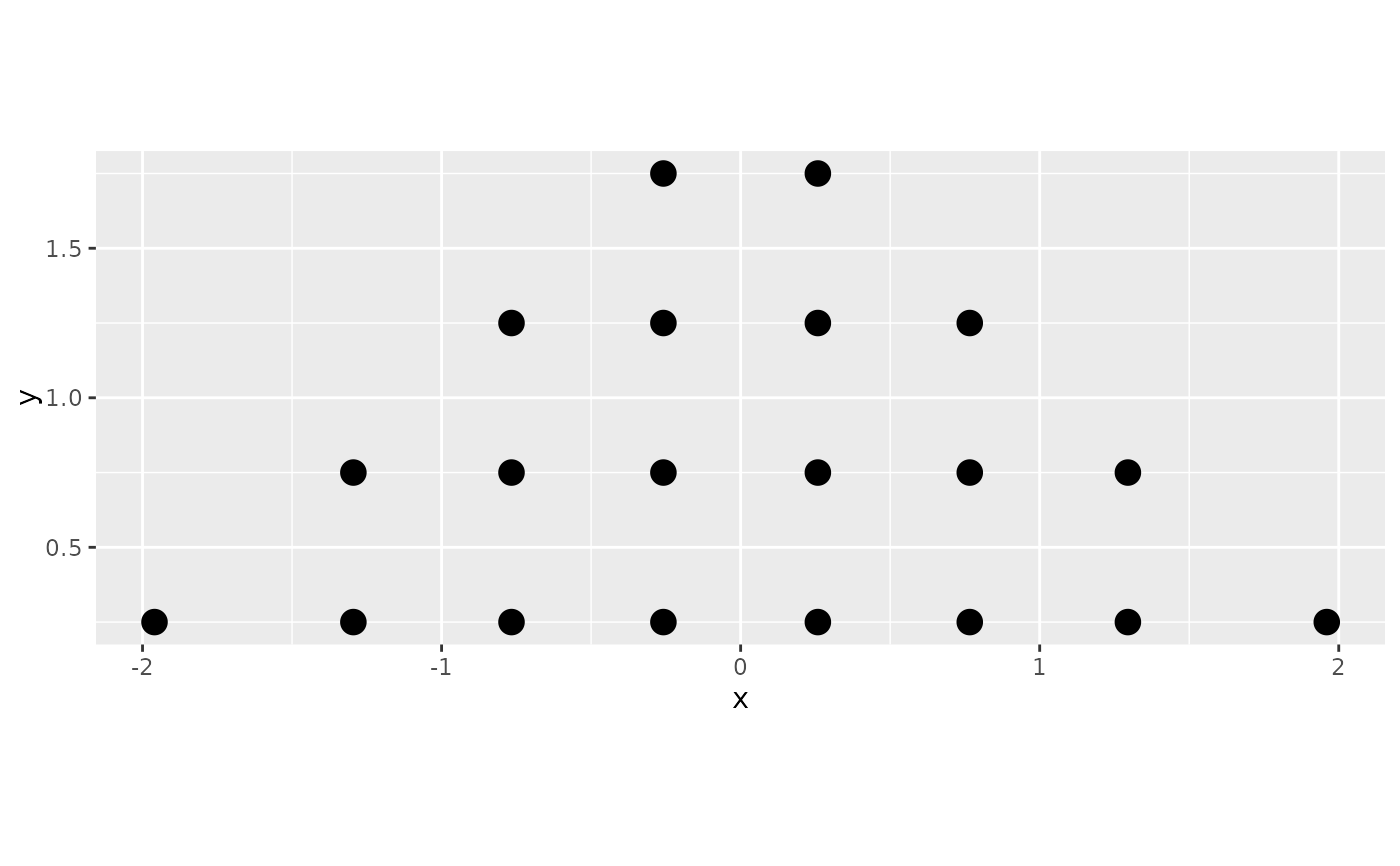 bin_df = bin_dots(x = x, y = 0, binwidth = 0.5, heightratio = 1)