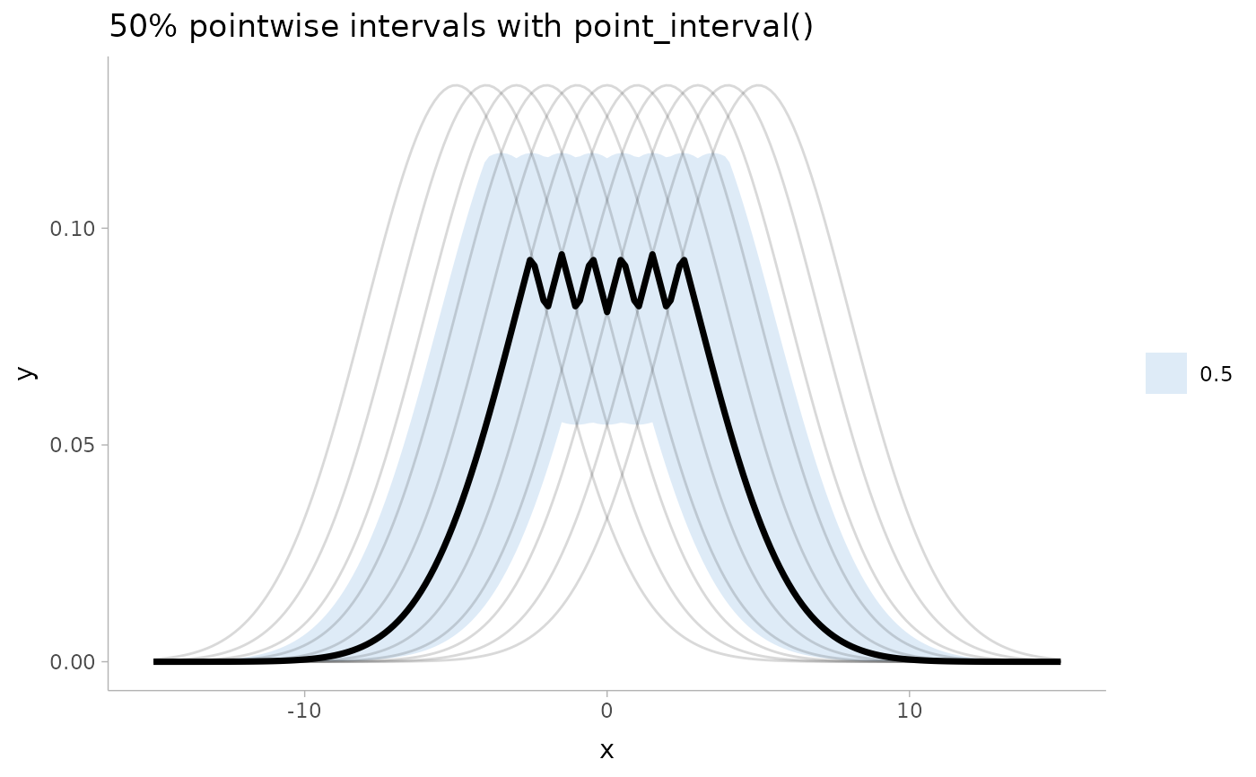 ggtitle("50% pointwise intervals with point_interval()") +