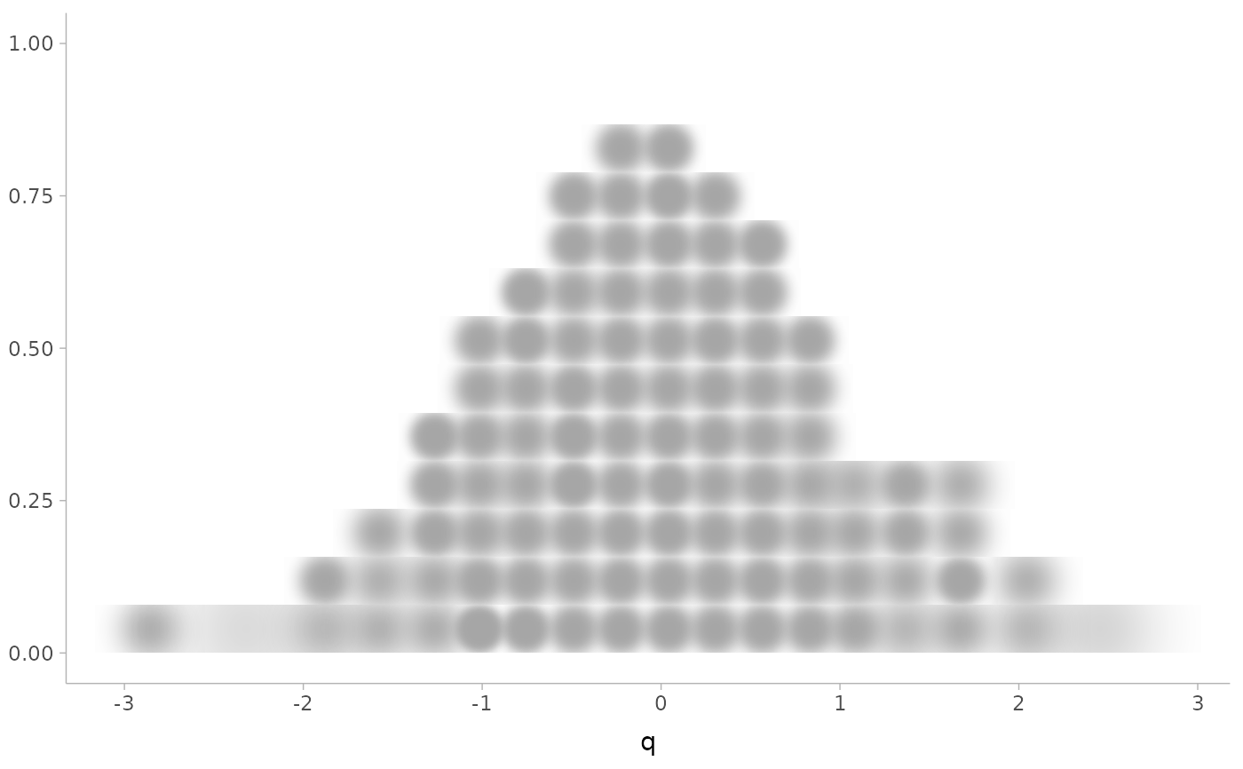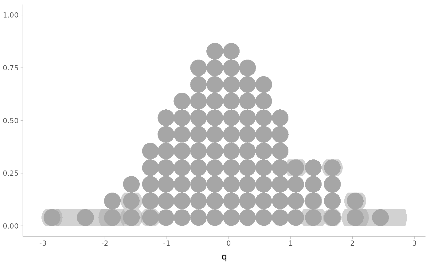their bins as in the classic Wilkinson dotplot. This maintains the