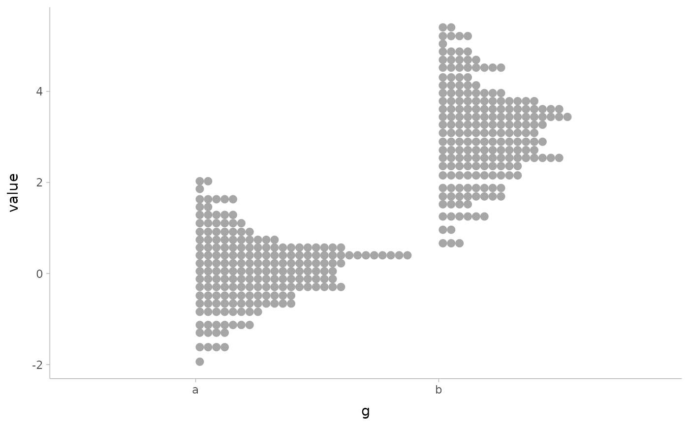 Geoms and stats based on geom_dotsinterval() create dotplots that automatically determine a bin width that