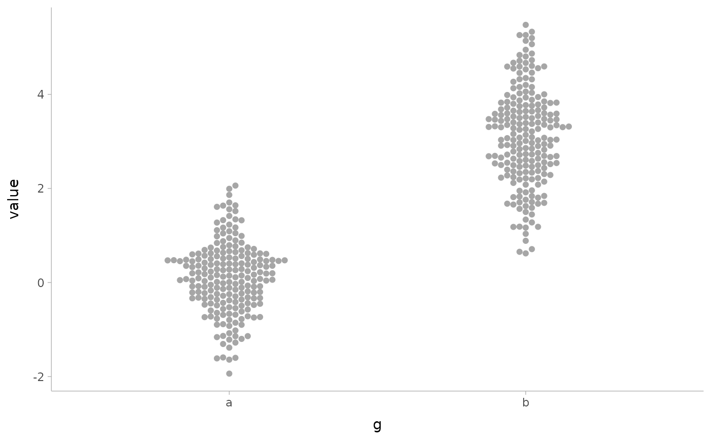 beeswarm::beeswarm(). Does not maintain alignment of rows or columns,