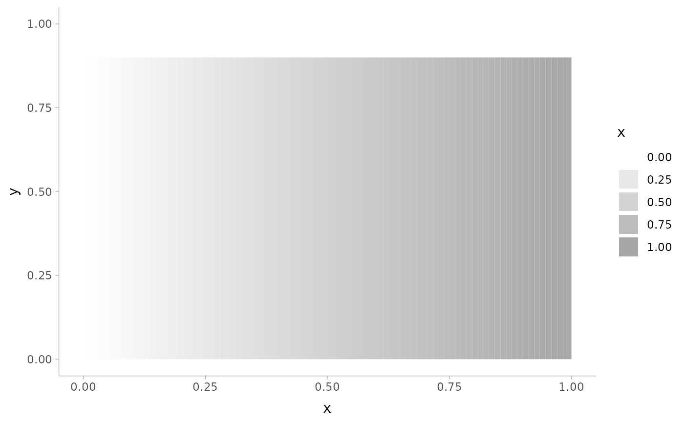 value of the colour aesthetic is; the fill_ramp aesthetic creates ramps
