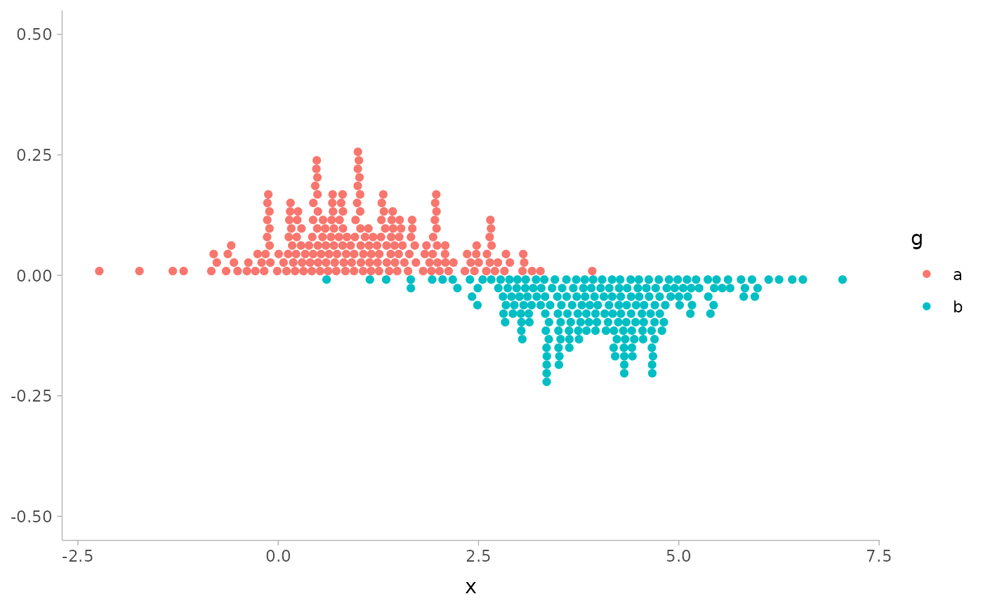 and geom_dotsinterval() family of geoms and stats. It works on discrete variables