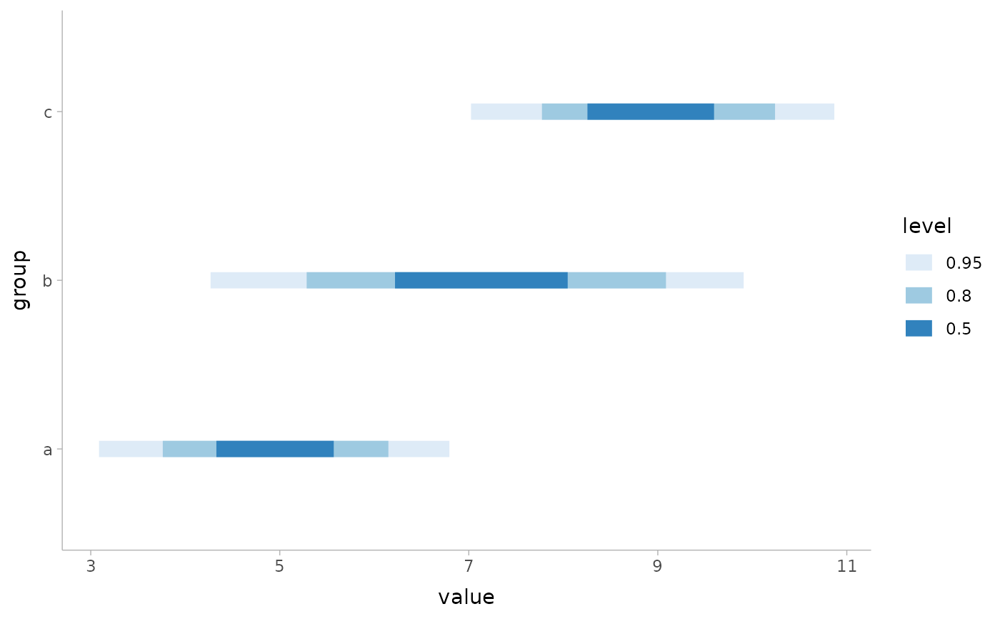 # and posterior::rvar(), can be used with the `xdist` / `ydist` aesthetics
