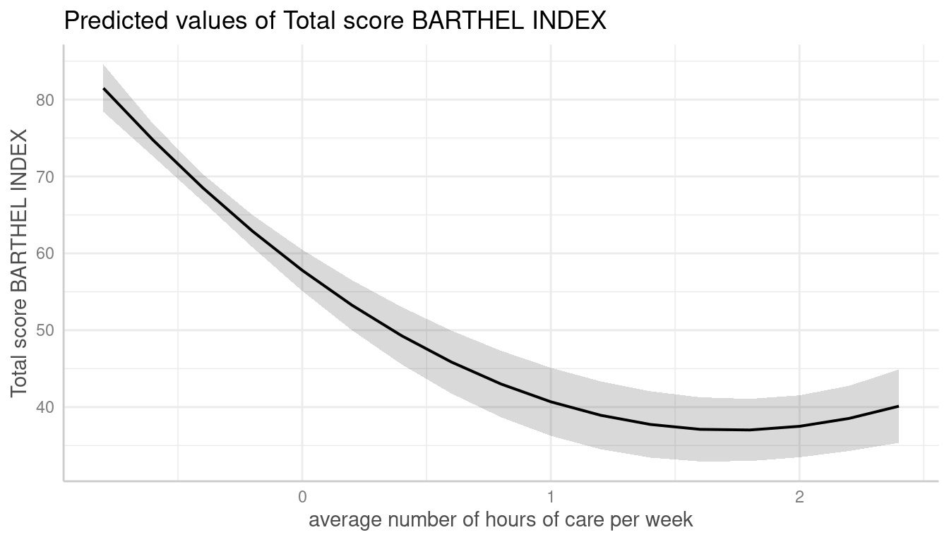 #> # Predicted values of Total score BARTHEL INDEX