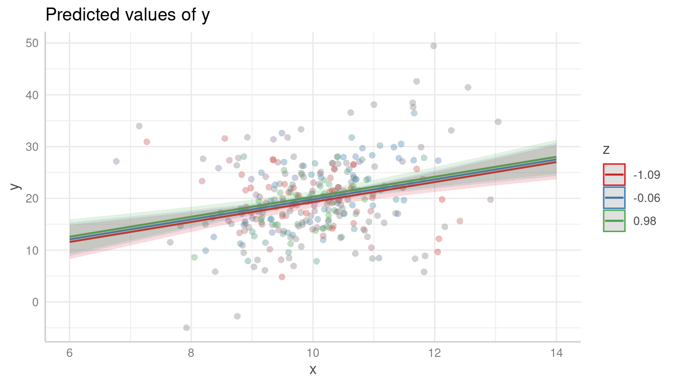 m <- lm(y ~ x * z, data = d)