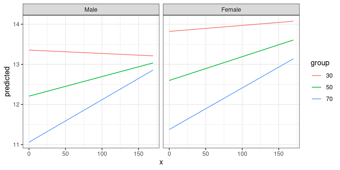 mydf <- predict_response(fit, terms = c("c12hour", "barthtot [30,50,70]", "c161sex"))