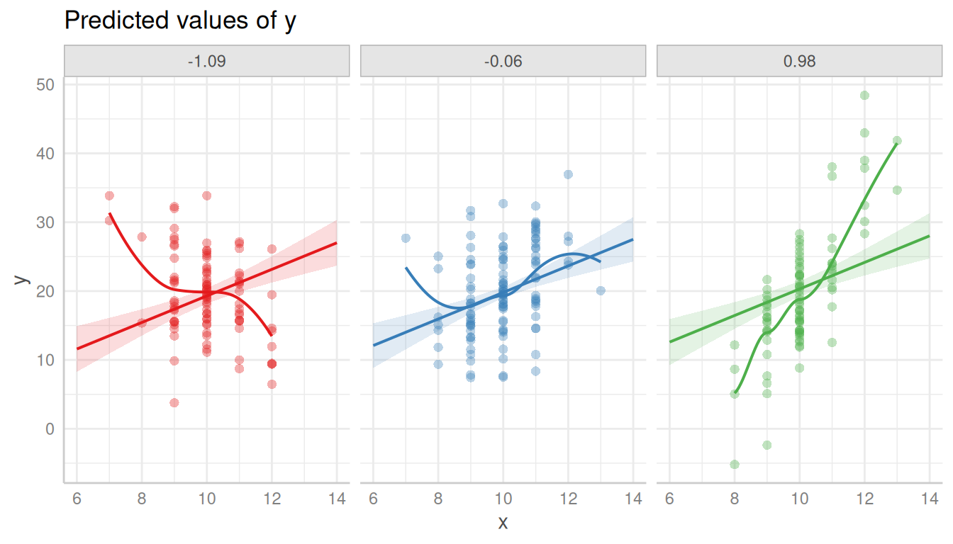 introduction_partial_residuals.RmdPlotting partial residuals on top of the estimated marginal means allows detecting missed modeling, like unmodeled non-linear relationships or unmodeled interactions. In a nutshell, it allows Visualizing Fit and Lack of Fit in Complex Regression Models with Predictor Effect Plots and Partial Residuals (Fox & Weisberg 2018).