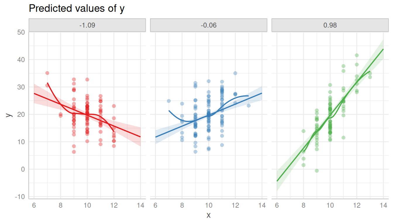 Let’s look at an example with a non-linear relationship. The missed pattern is not obvious when looking at the raw data: