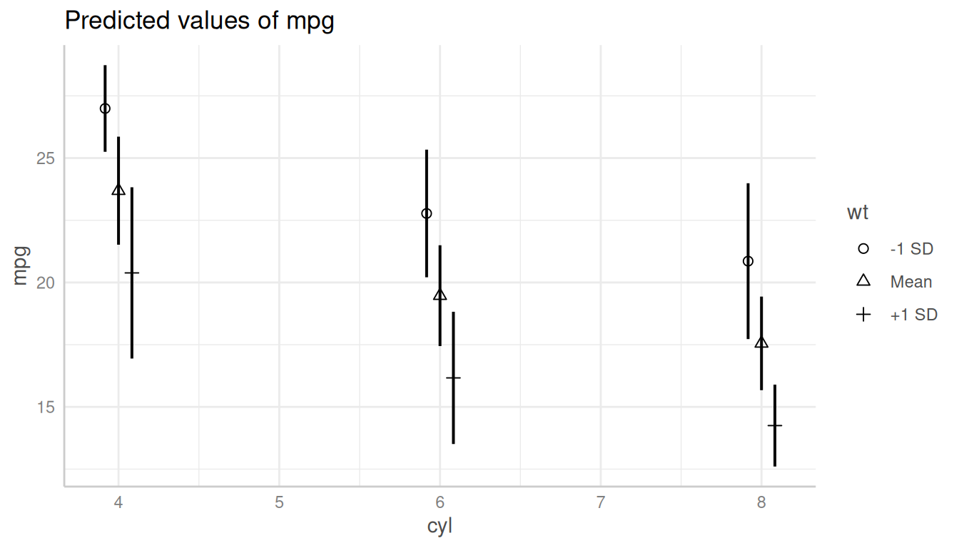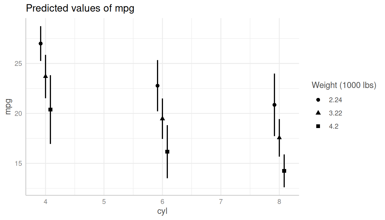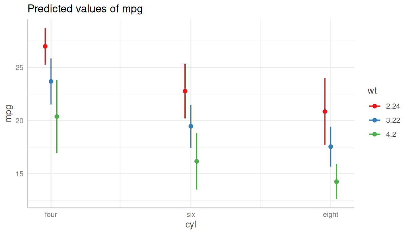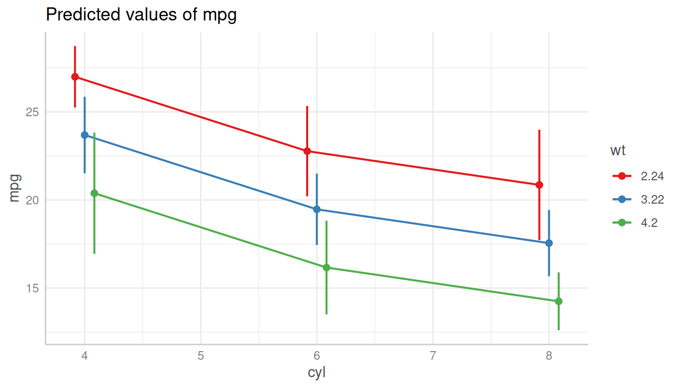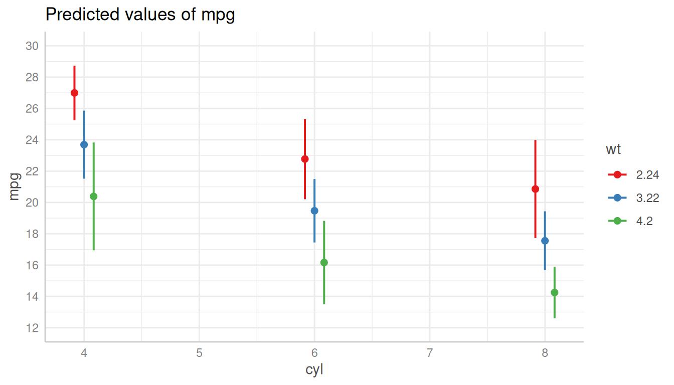 dat_categorical <- predict_response(m, terms = c("cyl", "wt"))
