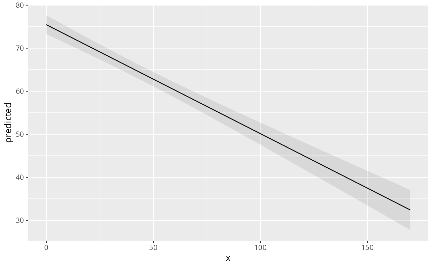 margin = "marginalmeans", or when callingggemmeans()respectively,type = "random"andtype = "zi_random"are not available, i.e. no unit-level predictions are possible."fixed"(or"count")Predicted values are conditioned on the fixed effects or conditional model only. For mixed models, predicted values are on the population-level, i.e.