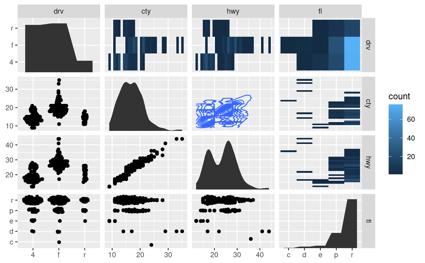 facet_matrix(vars(drv:fl), layer.diag = 2)