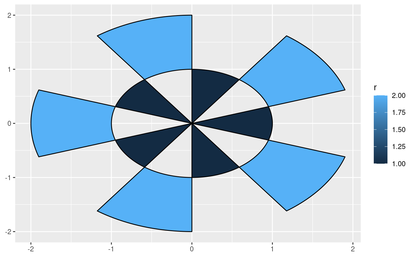 geom_arc_bar(aes(x0 = 0, y0 = 0, r0 = r - 1, r = r, start = start,