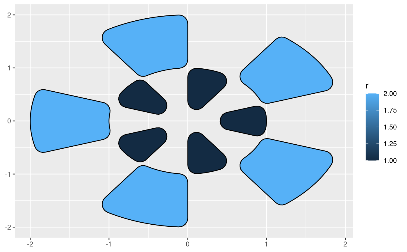 # geom_arc_bar uses geom_shape to draw the arcs, so you have all the