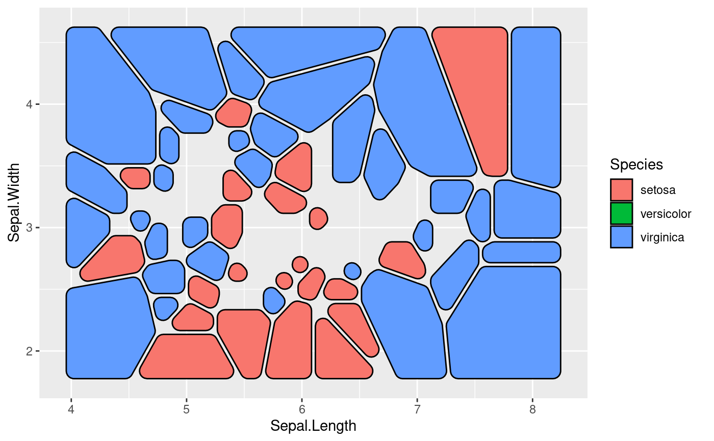 geom_voronoi_tile(aes(fill = Species), normalize = TRUE) +