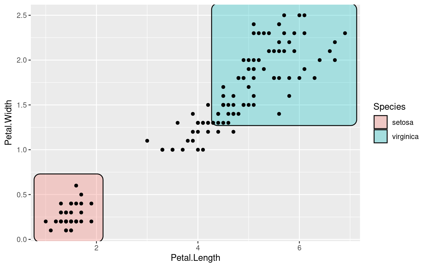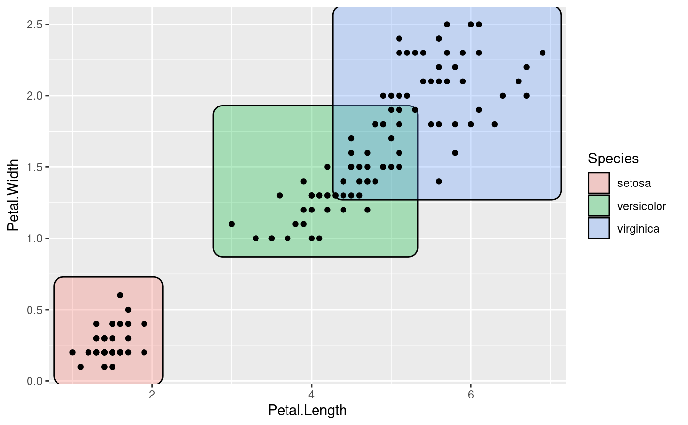 This geom lets you annotate sets of points via rectangles. The rectangles are