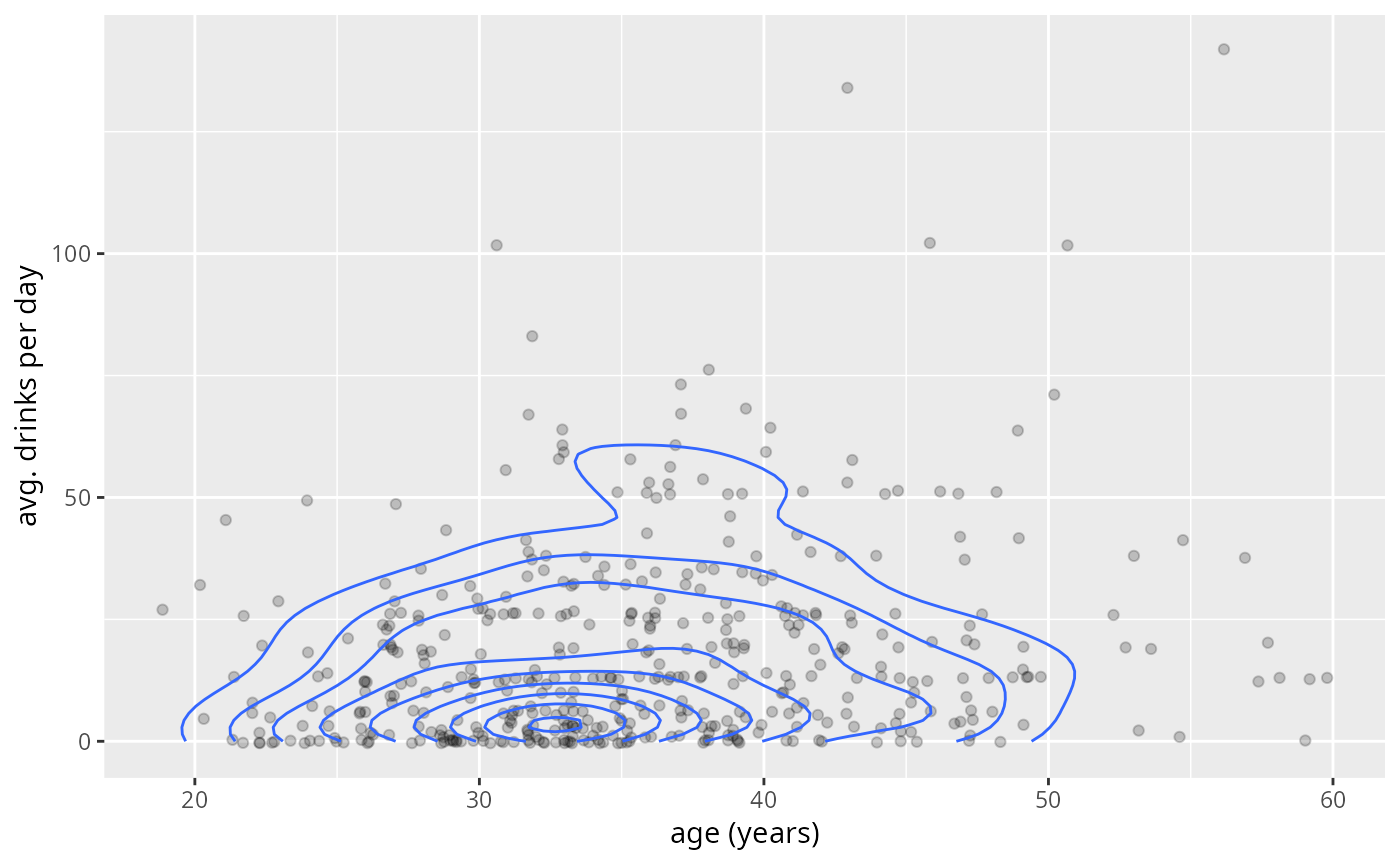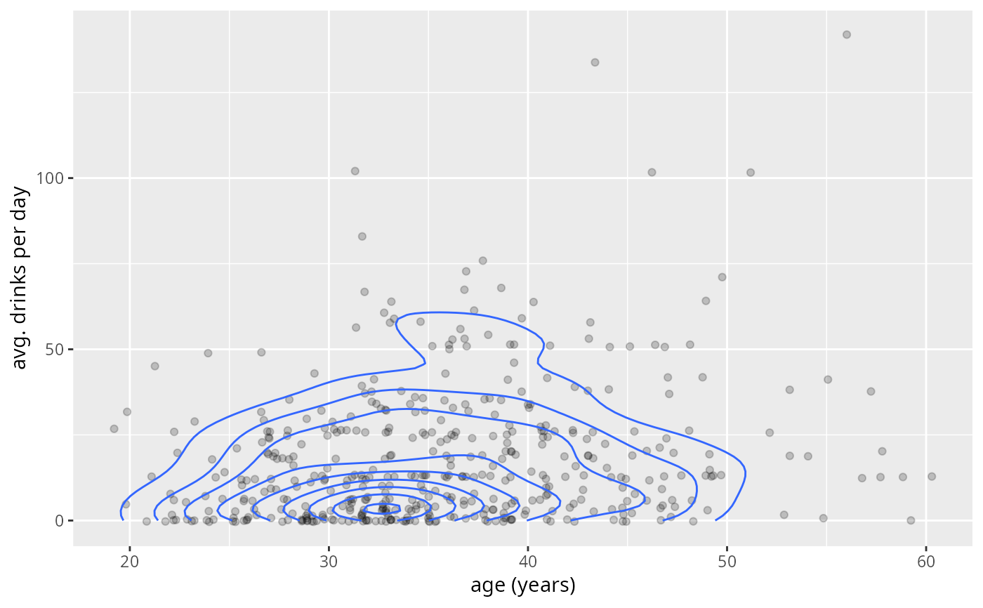 gf_density2d(avg_drinks ~ age, data = mosaicData::HELPrct)