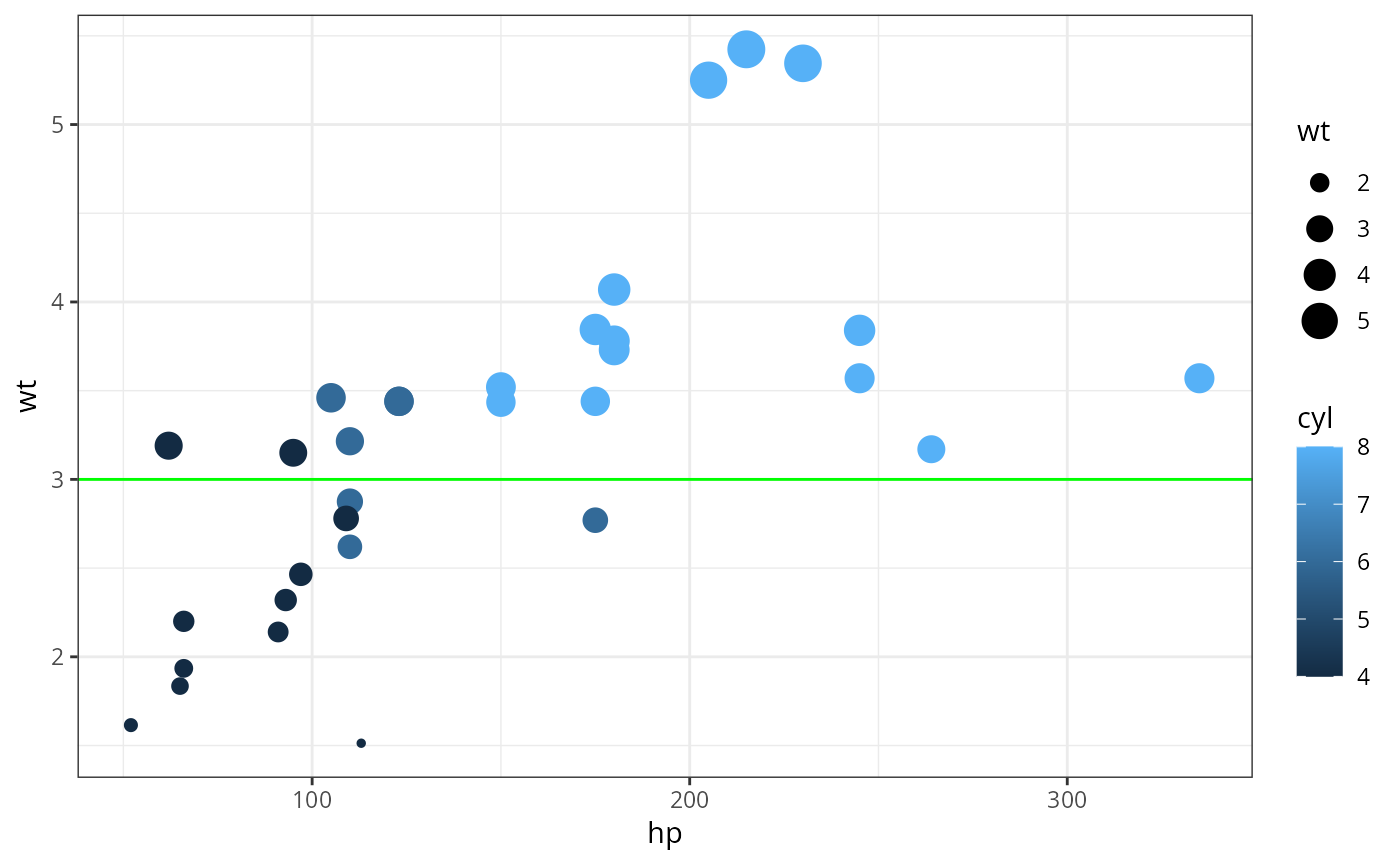 gf_abline(slope = 0, intercept = 3, color = "green")