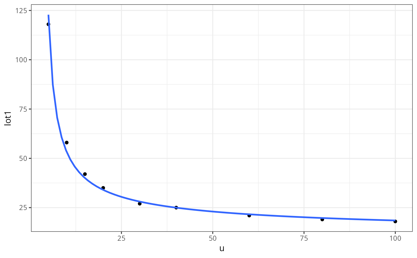 method = NULLthe smoothing method is chosen based on the size of the largest group (across all panels).stats::loess()is used for less than 1,000 observations; otherwisemgcv::gam()is used withformula = y ~ s(x, bs = "cs")withmethod = "REML". Somewhat anecdotally,loessgives a better appearance, but is \(O(N^{2})\) in memory, so does not work for larger datasets.If you have fewer than 1,000 observations but want to use the same